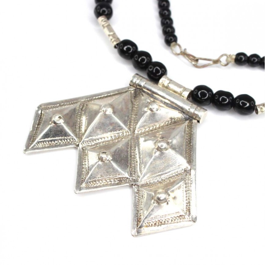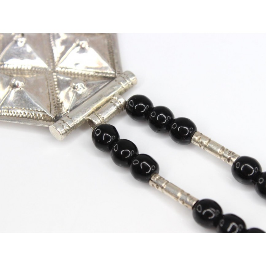 Vandut Colier tuareg cu amuletă Khomeissa - Hamsa | argint & onix negru | Niger