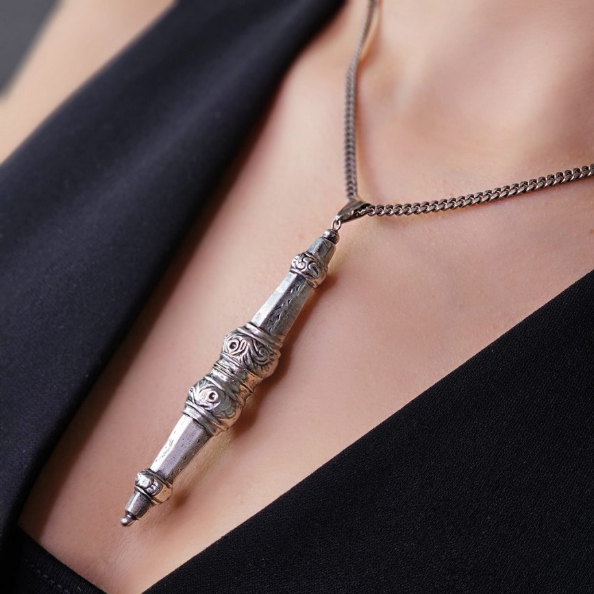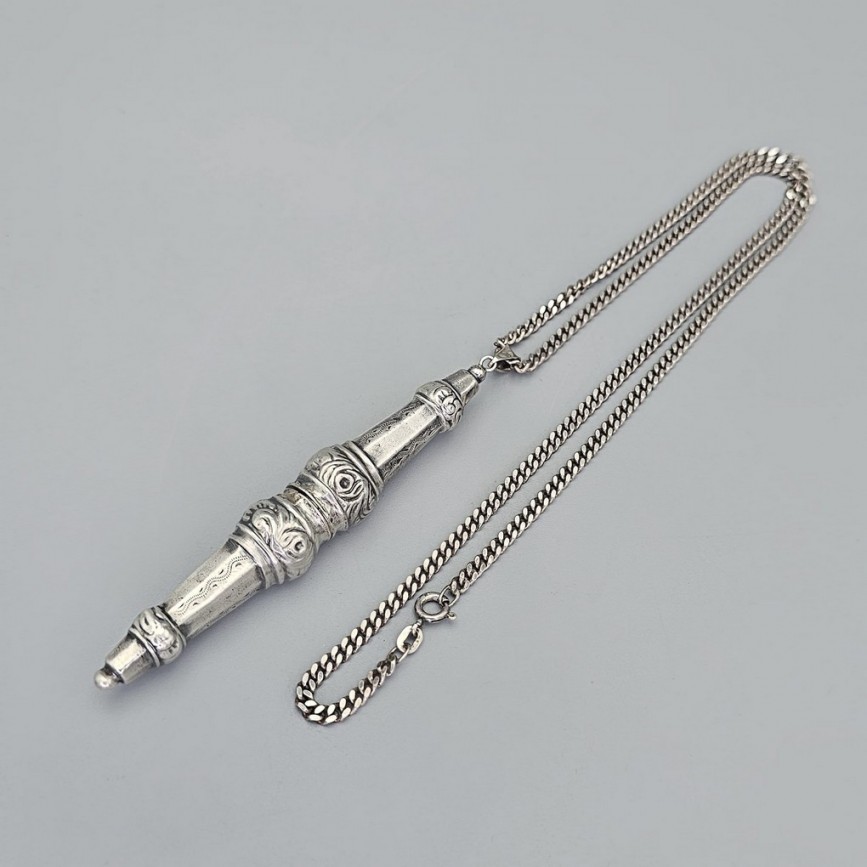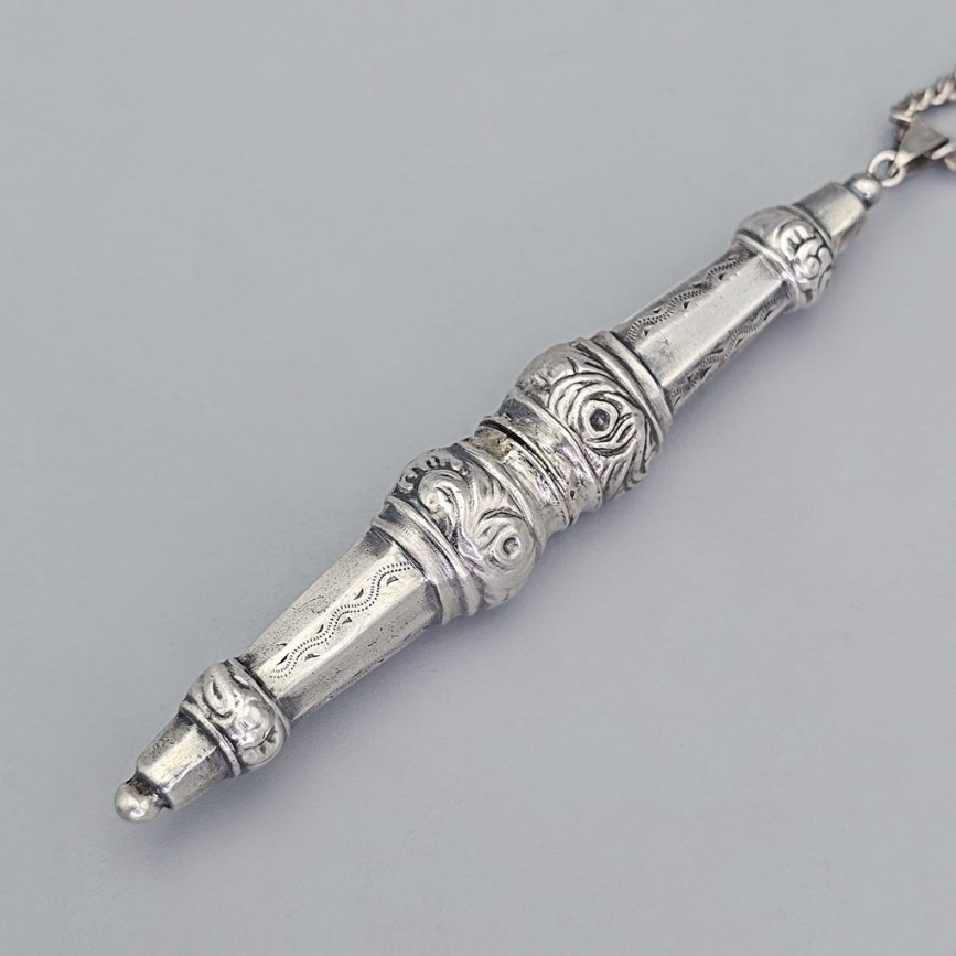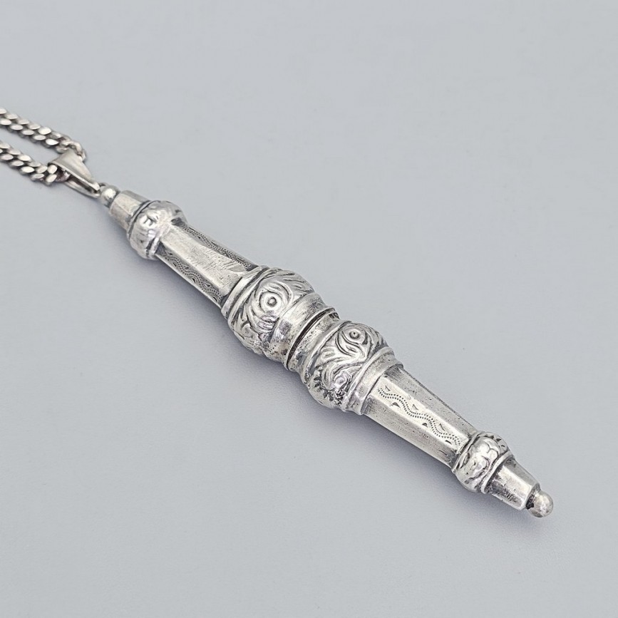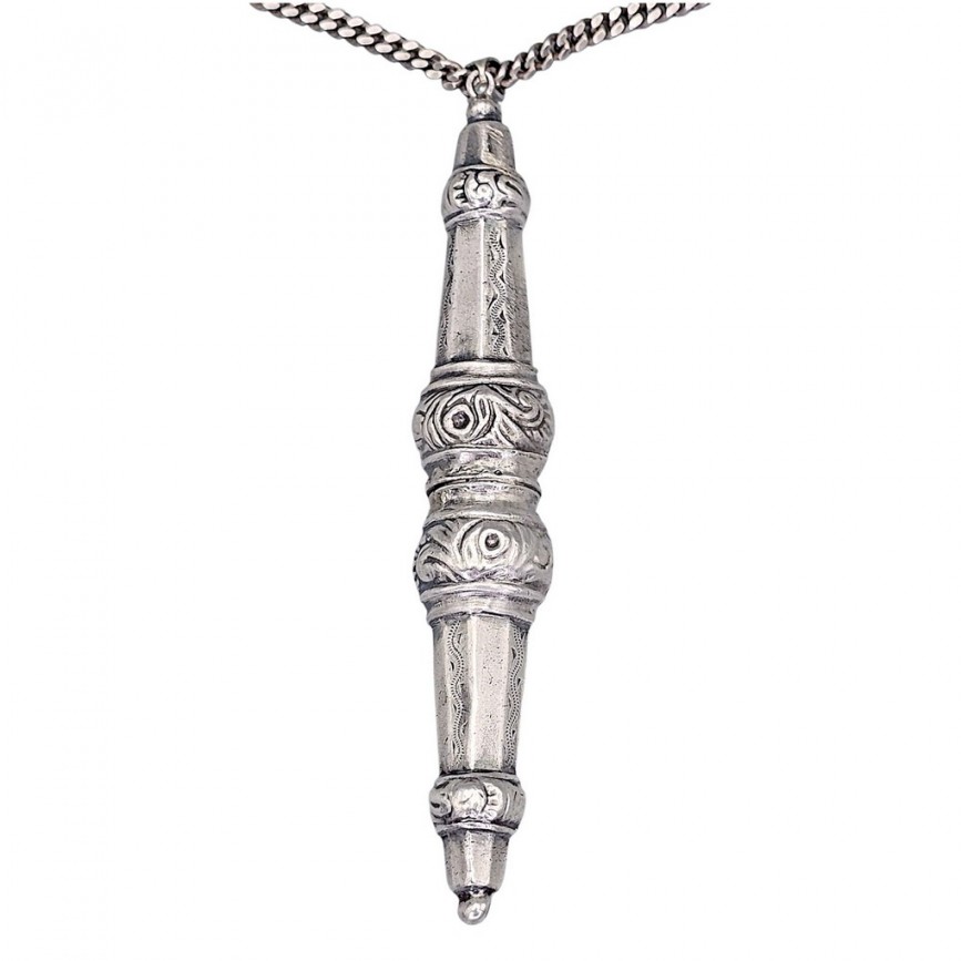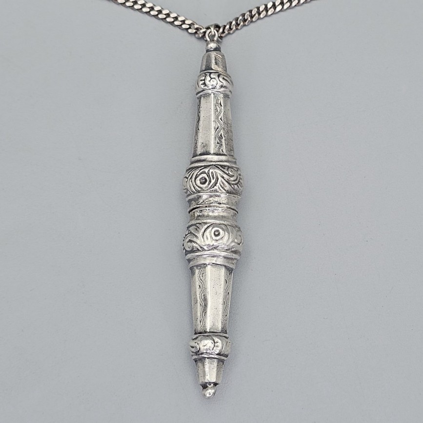 Colier din argint accesorizat cu un inedit pandant - etui de perioadă victoriană ( cca 1850 - 1890 ).