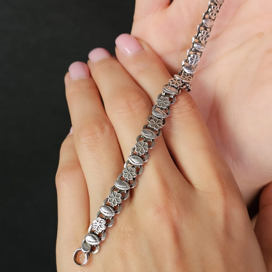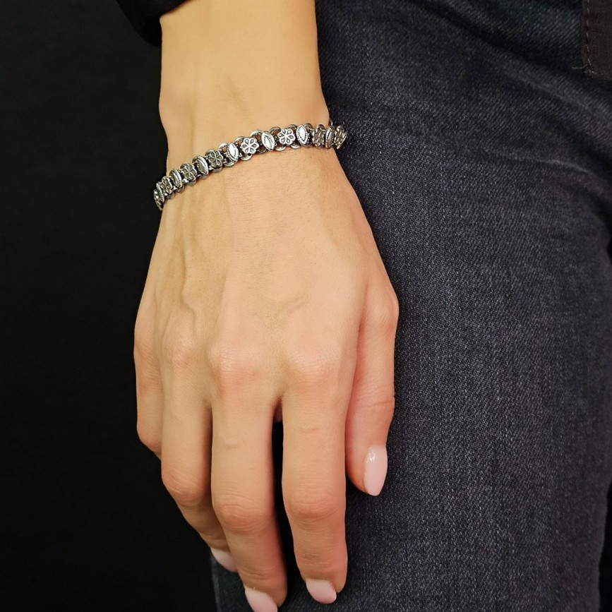 Articulațiile scurte și dese conferă brățării o fluiditate aparte, făcând-o să cadă natural pe încheietură.