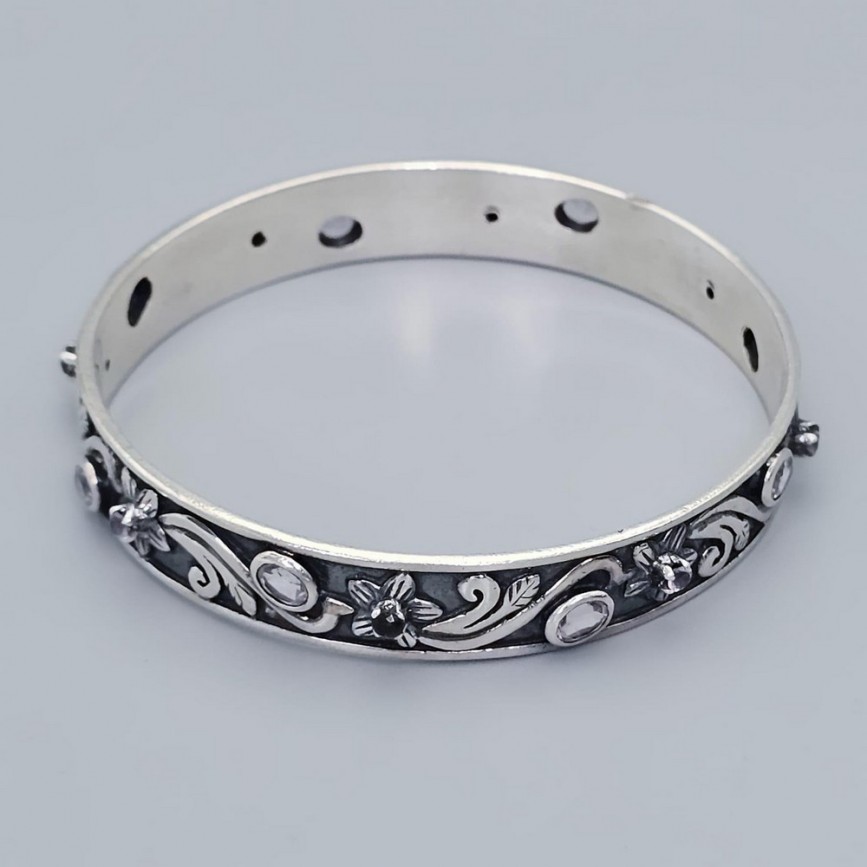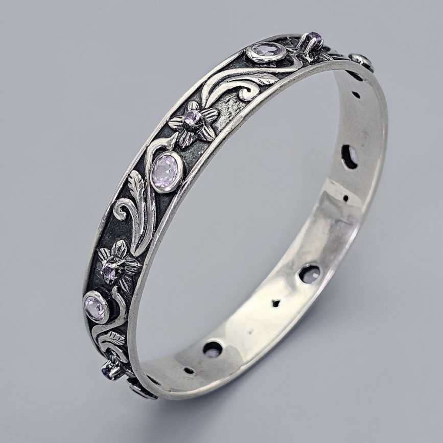 Elegantă brățară bangle din argint masiv, decorată cu ametiste naturale.