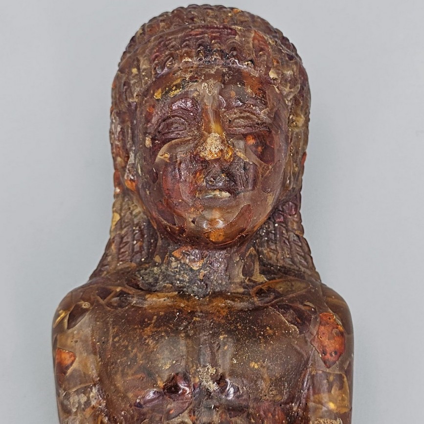 NOU Statuetă antropomorfă tip Korus din chihlimbar natural |  cca. 1880 - 1900