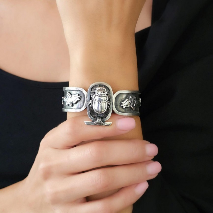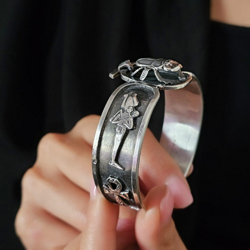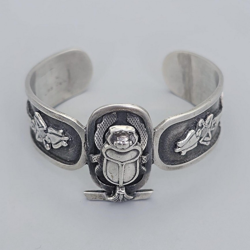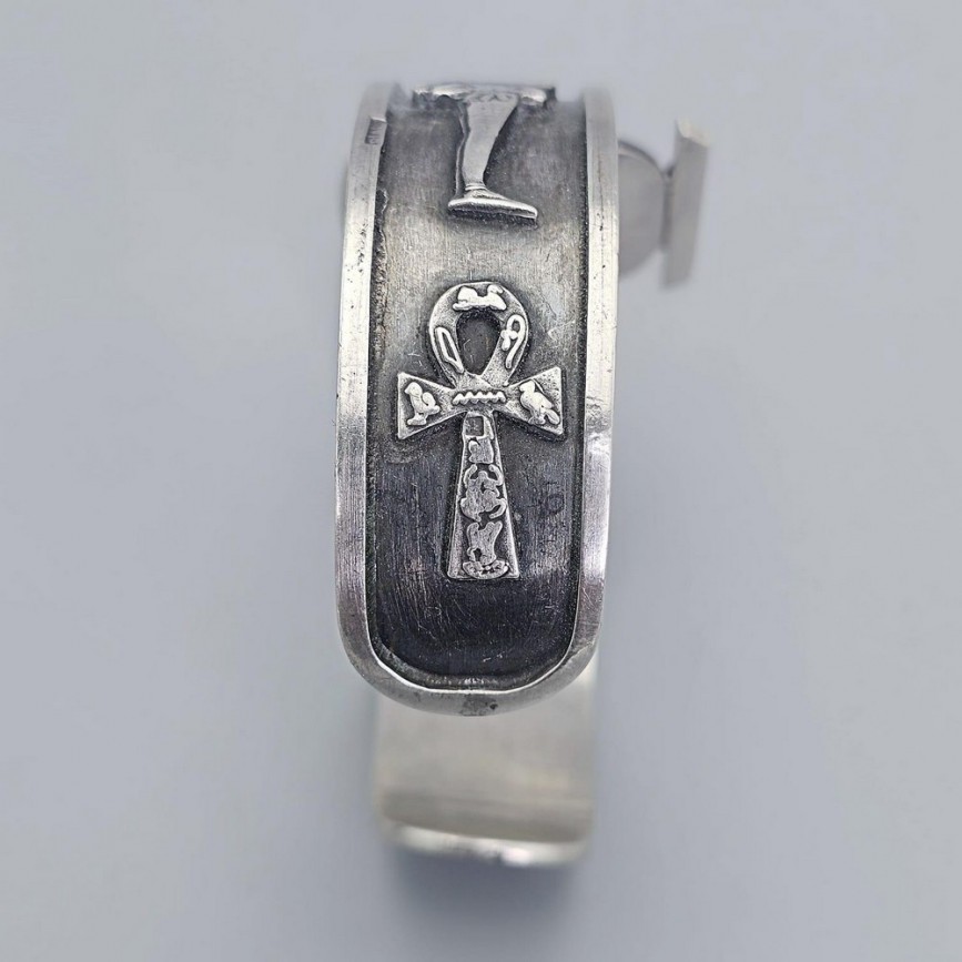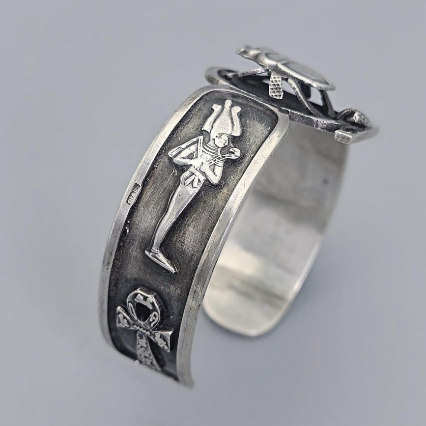 Brățară statement unisex Egyptian Revival din argint | cca. 1960 - 1970