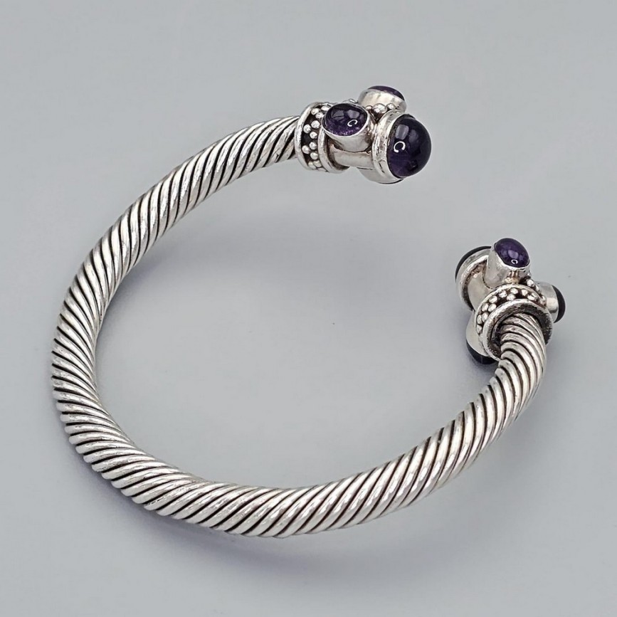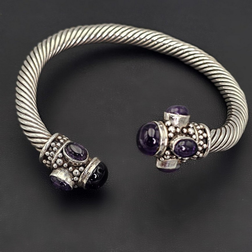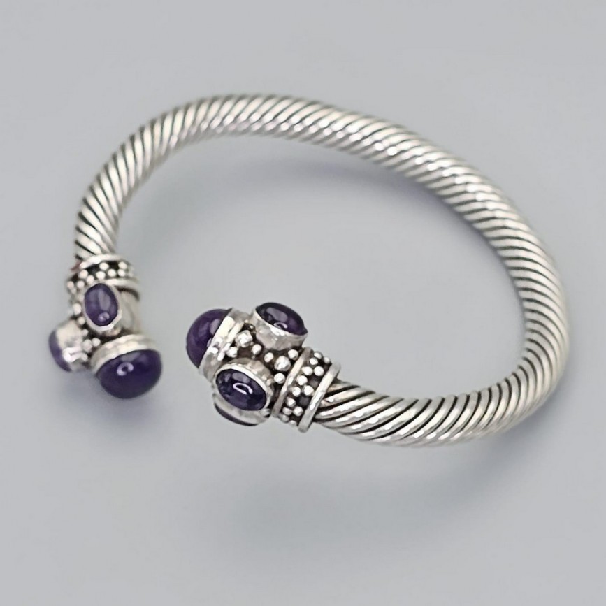 Remarcabilă brățară cuff balineză manufacturată în argint masiv & ametiste naturale.