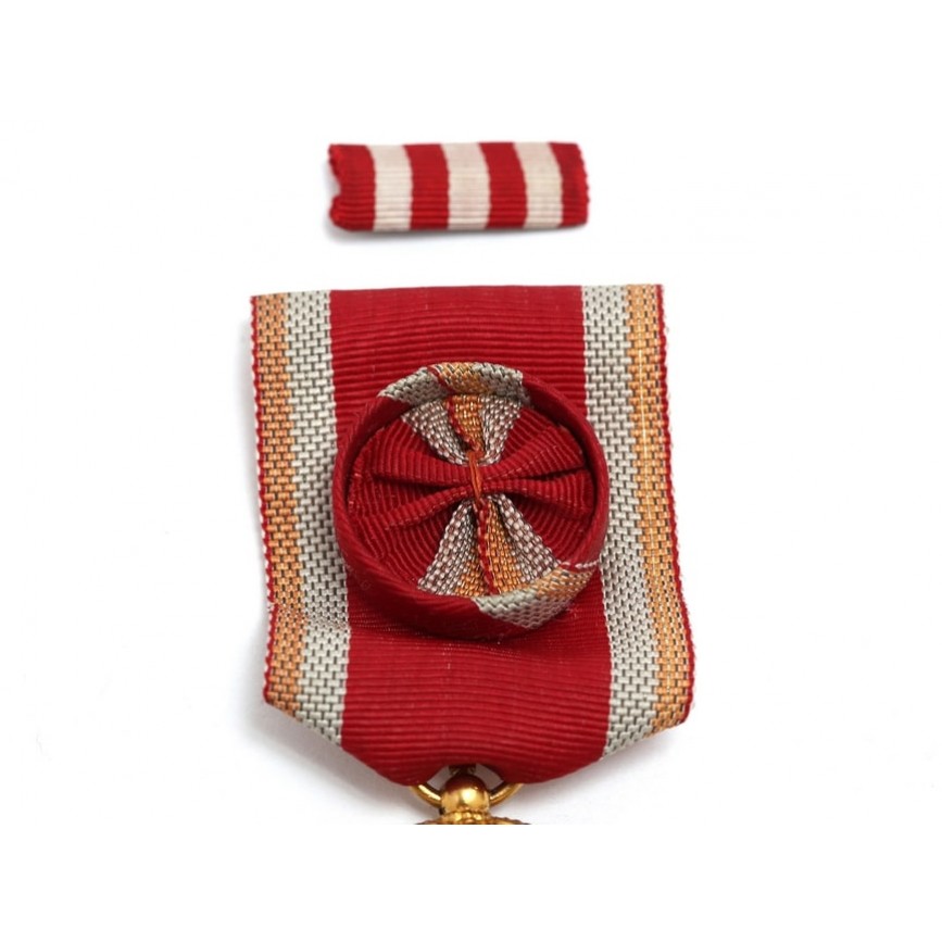 Montură în argint aurit și emailat, ribon textil original, de virtute militară.