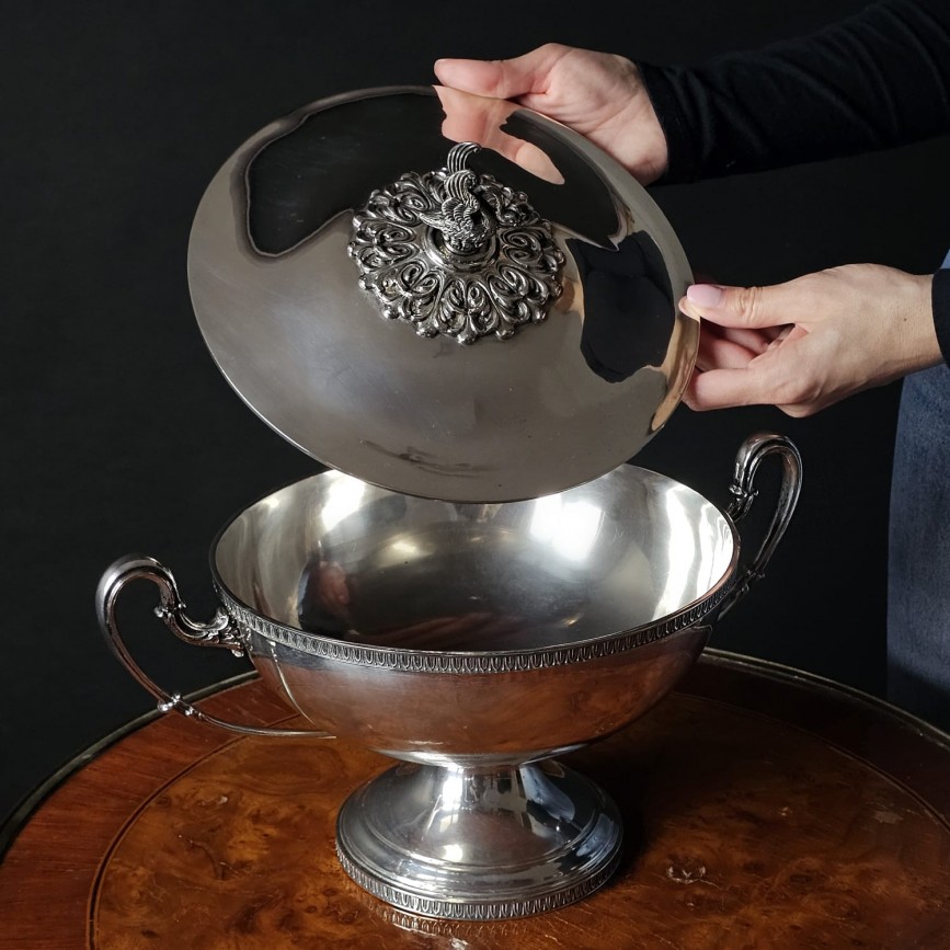 Centru de masă - supieră din argint masiv în manieră neoclasică