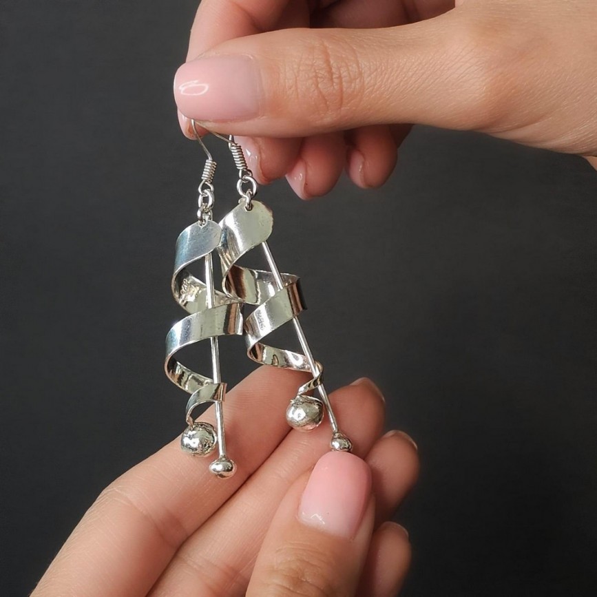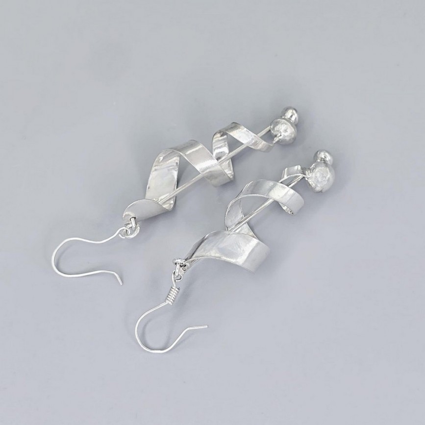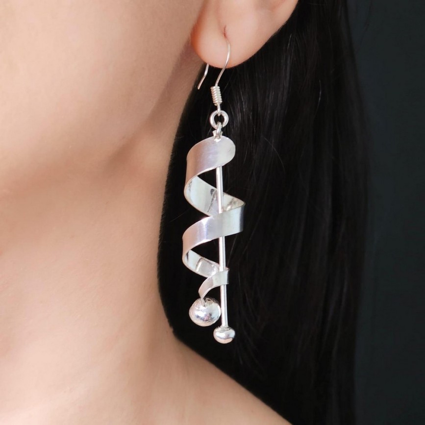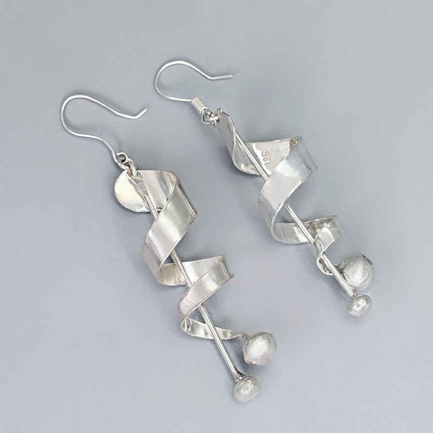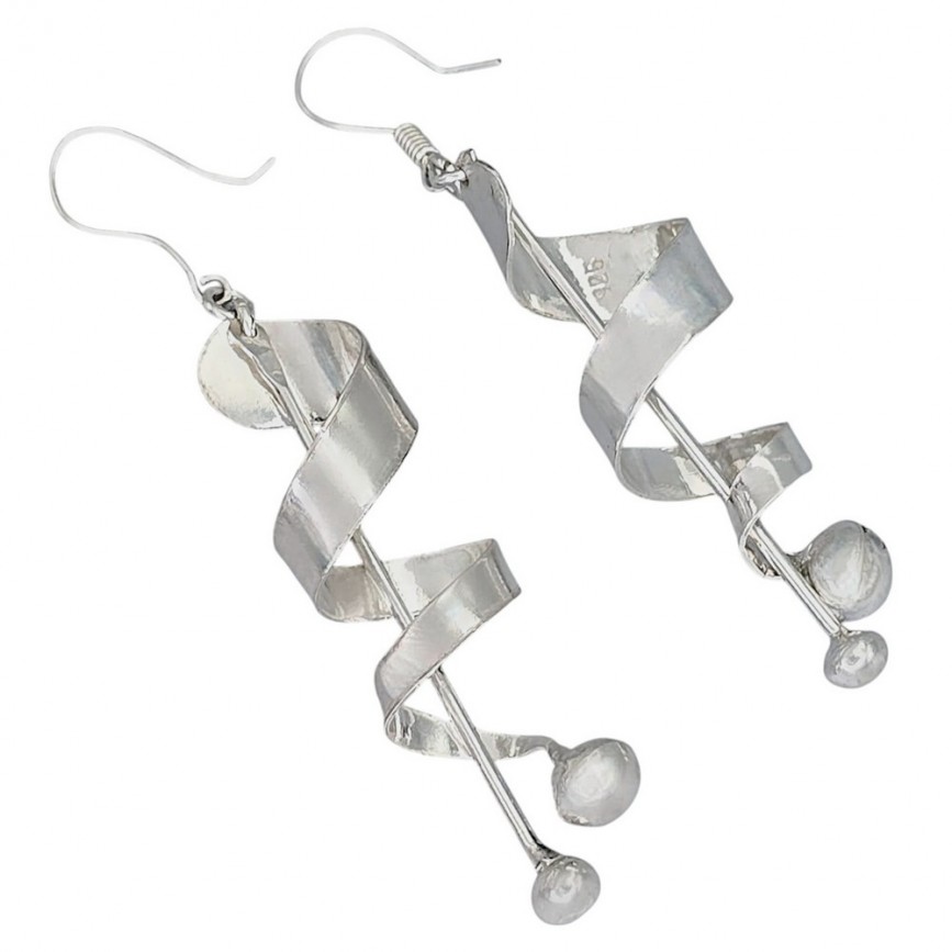 Cercei statement din argint 925, cu un design sculptural spiraliform ce se desfășoară în jurul unui ax central vertical,