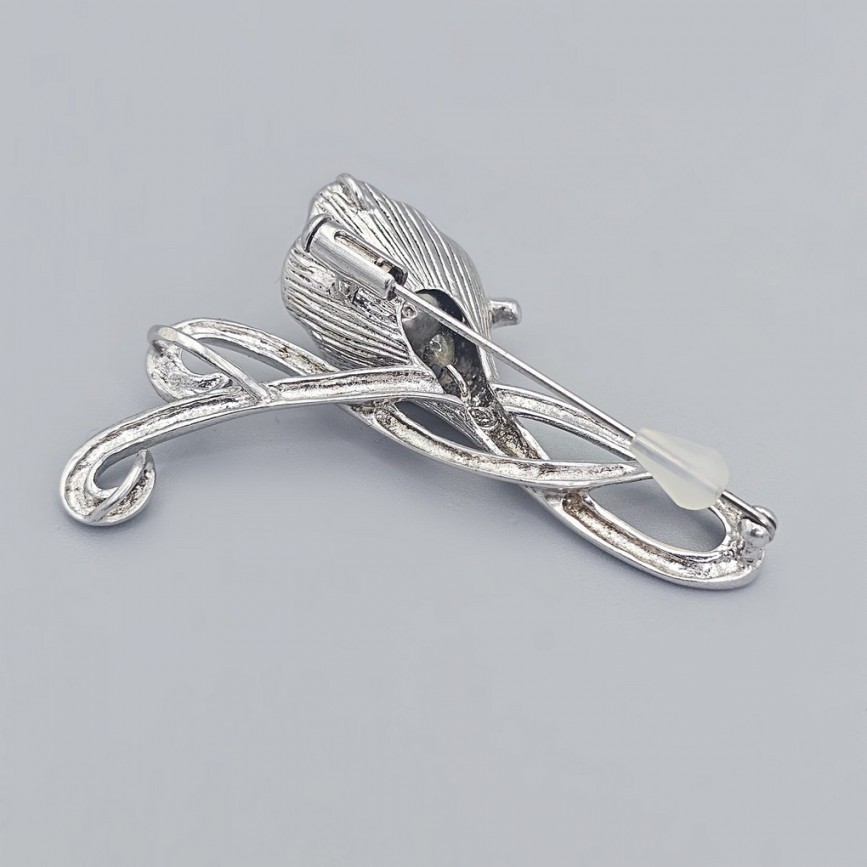 Montura fluidă cu doua anouri intregrate pe revers, permite purtarea piesei atât ca broșă, cât și ca pandant, oferind versatilitate.