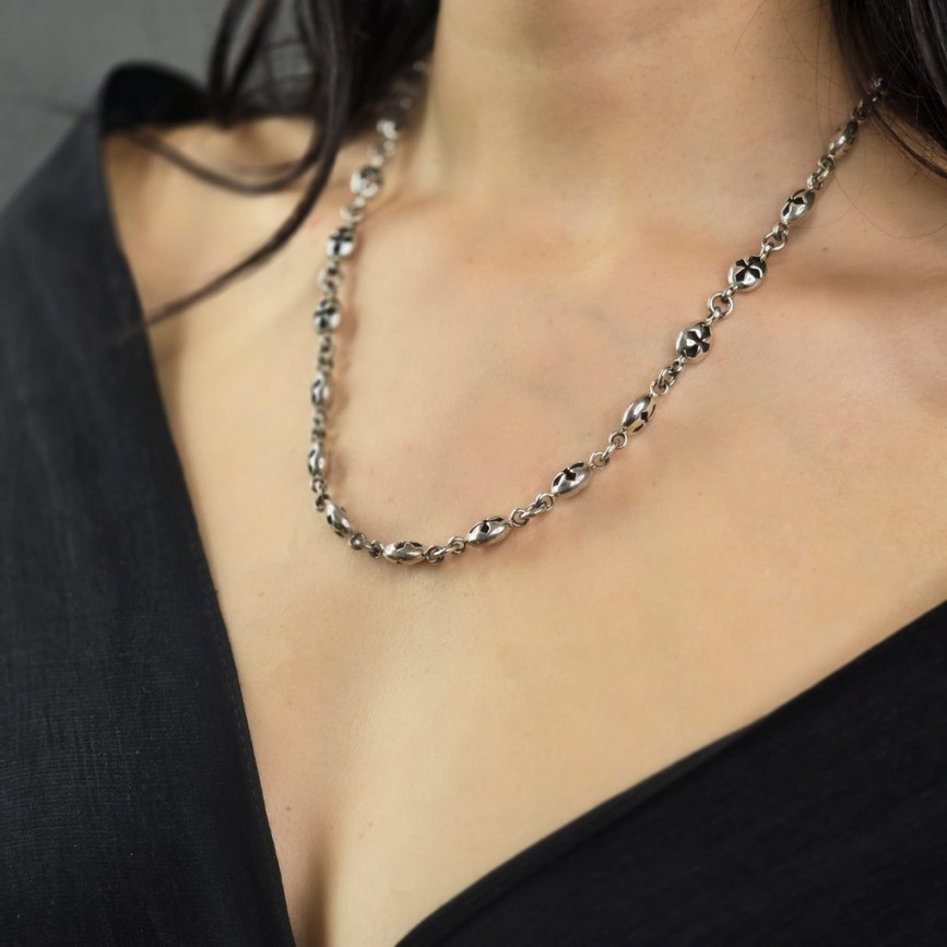 Colier statement unisex realizat din argint masiv 925, cu o prezență vizuală puternică și o construcție solidă, articulată din zale ample, volumizate, atent finisate.