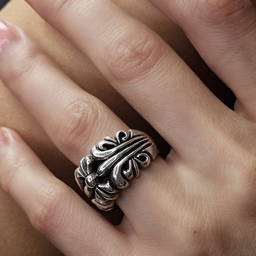 Inel statement fleur-de-lis din argint masiv.