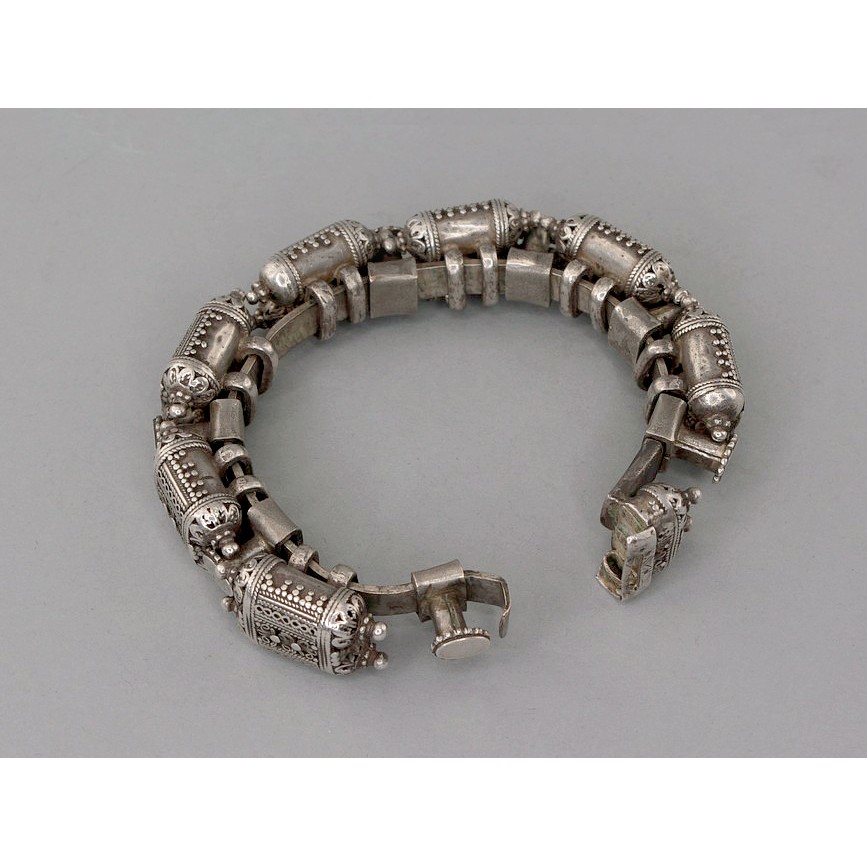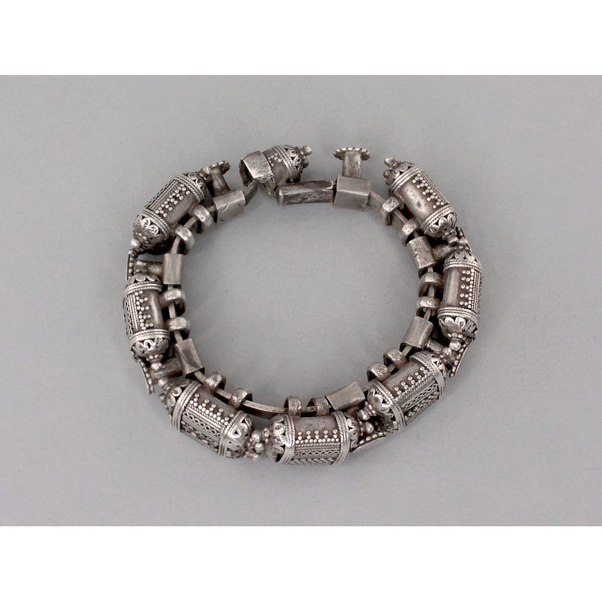 Veche brățară etnică indiană decorată cu amulete Tawiz din argint | Himachal Pradesh cca.1900