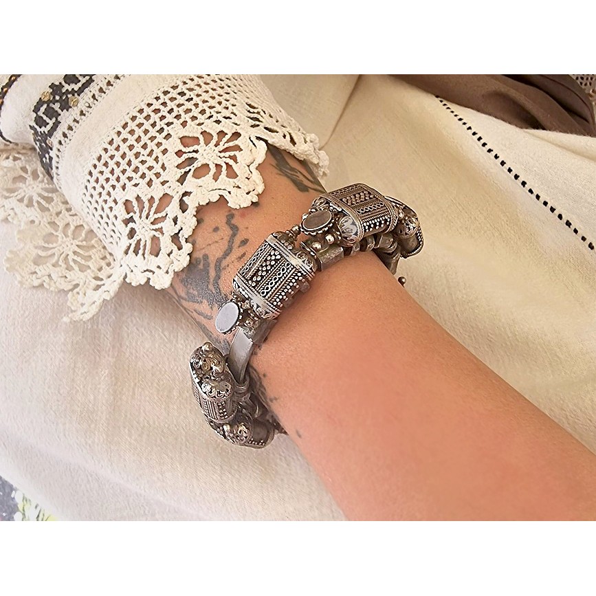 Veche brățară etnică indiană decorată cu amulete Tawiz