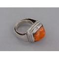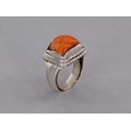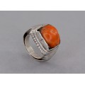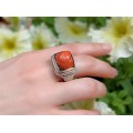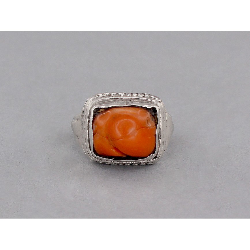 Vechi inel etnic indian, manufacturat în argint decorat cu un remarcabil anturaj de coral natural.