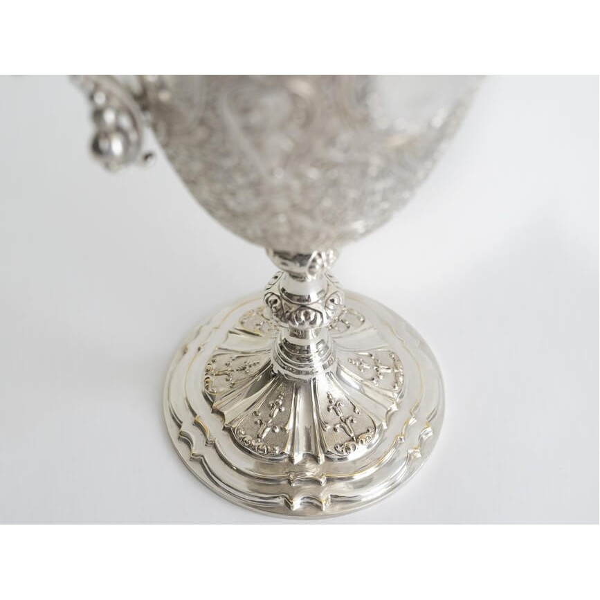 manufactură în  argint masiv, turnat, presat, gravat  și cizelat