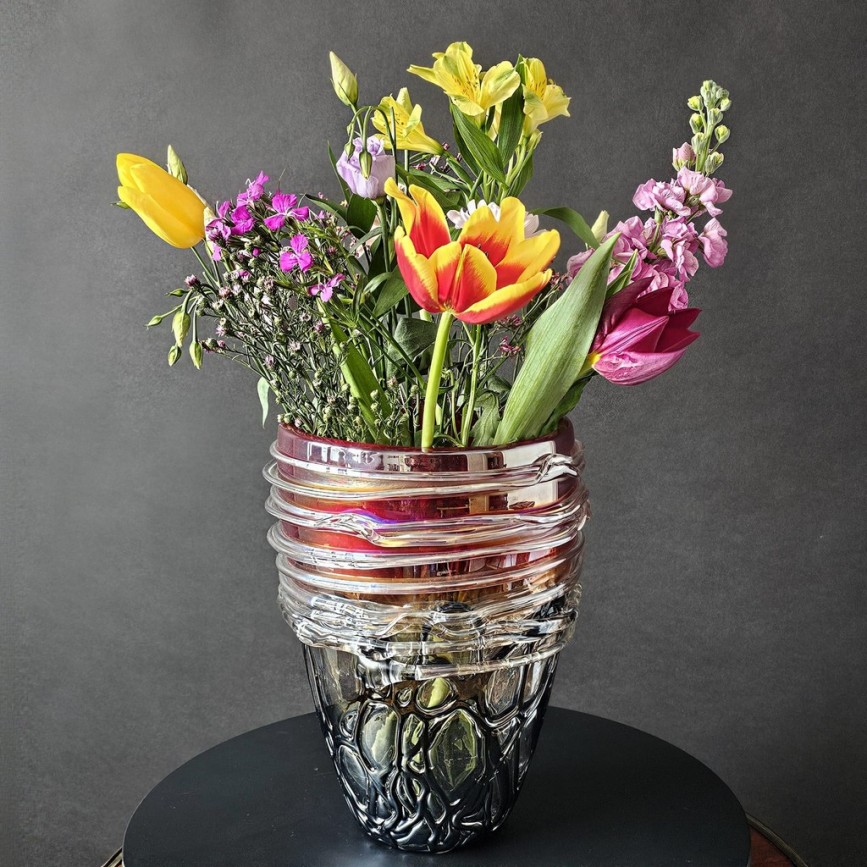 Vază sculpturală din sticlă de Murano suflată manual