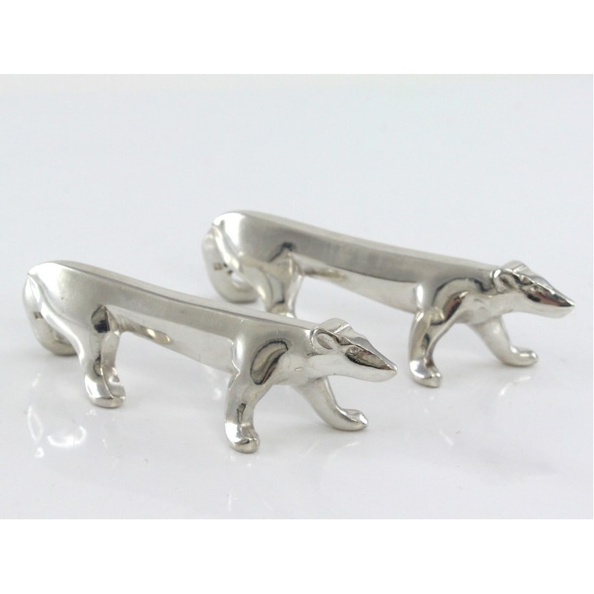 Suporturi redate sub forma unor animale stilizate geometric în manieră Art Deco: pisică, câine, porc, urs, leu și porumbel.