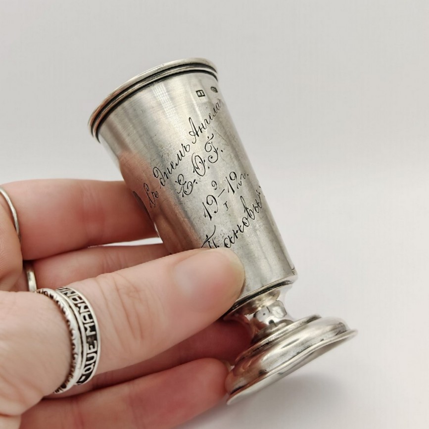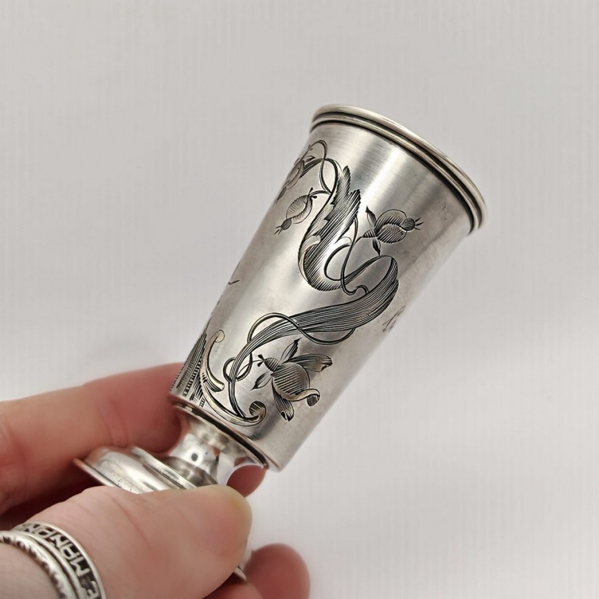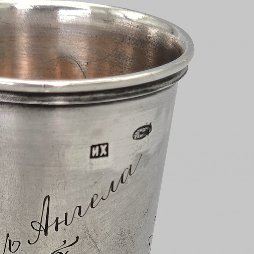 Pahar din argint rusesc, destinat servirii băuturilor spirtoase, realizat în atelierul prestigiosului argintar Ivan Petrovich Khlebnikov,