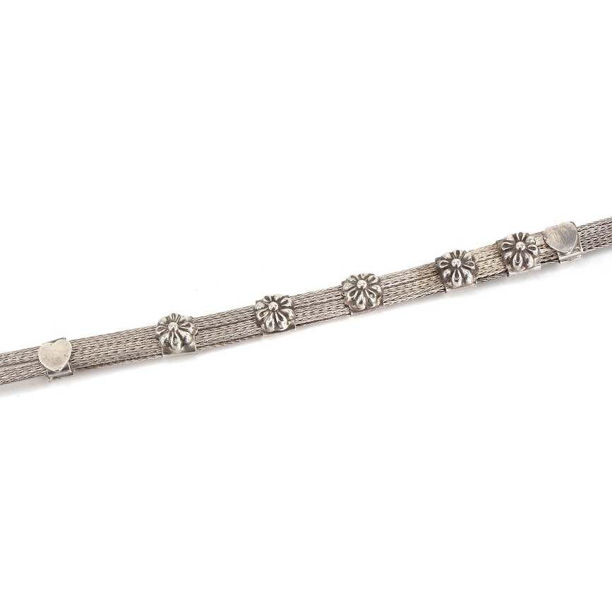 Pafta stilizată sub forma unei inimi decorată prin repousse și filigranare manuală și accesorizată cu charmuri sferice.
