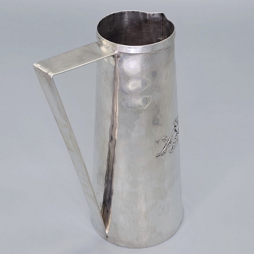 Carafă din argint, pentru purificarea și servirea apei, elegant geometrizată în manieră modernistă specifică celebrului atelier florentin, Brandimarte.