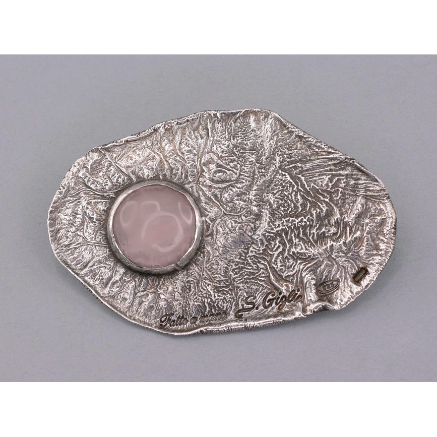 -14% Vandut Broșă - pandant statement din argint reticulat și cuarț roz natural | orfevru Silvio Gigli | anii 2000