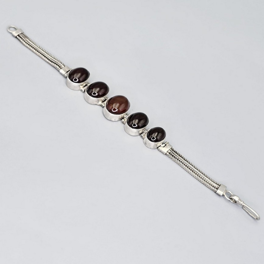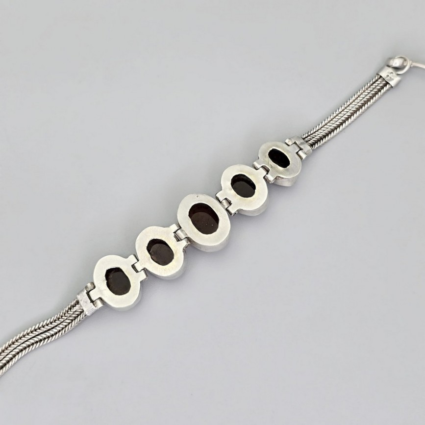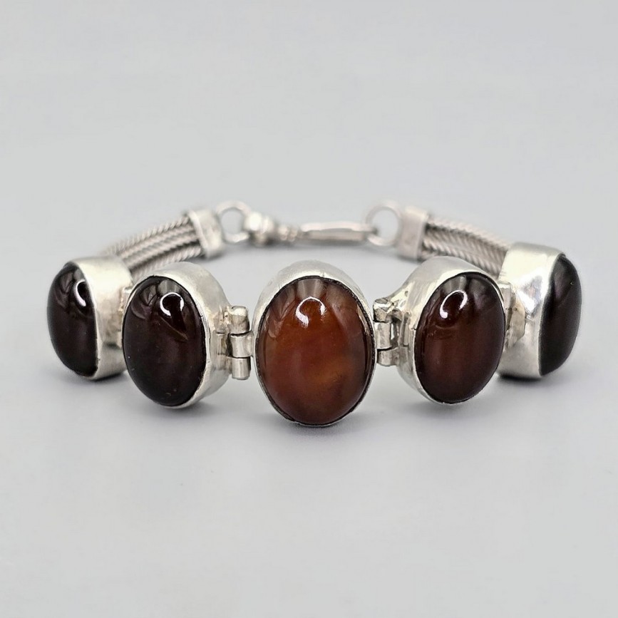 Brățară statement unisex, din argint, decorată cu spectaculoase anturaje de carneol natural.