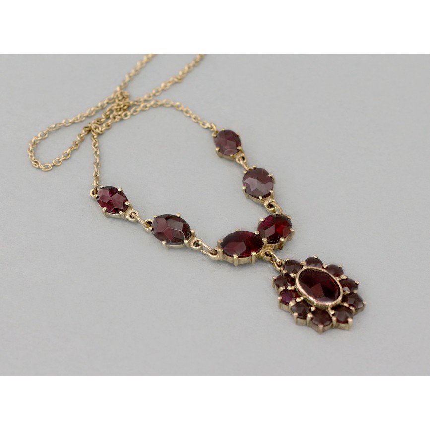 Colier Art Deco din aur 8 k decorată cu granate naturale de Bohemia