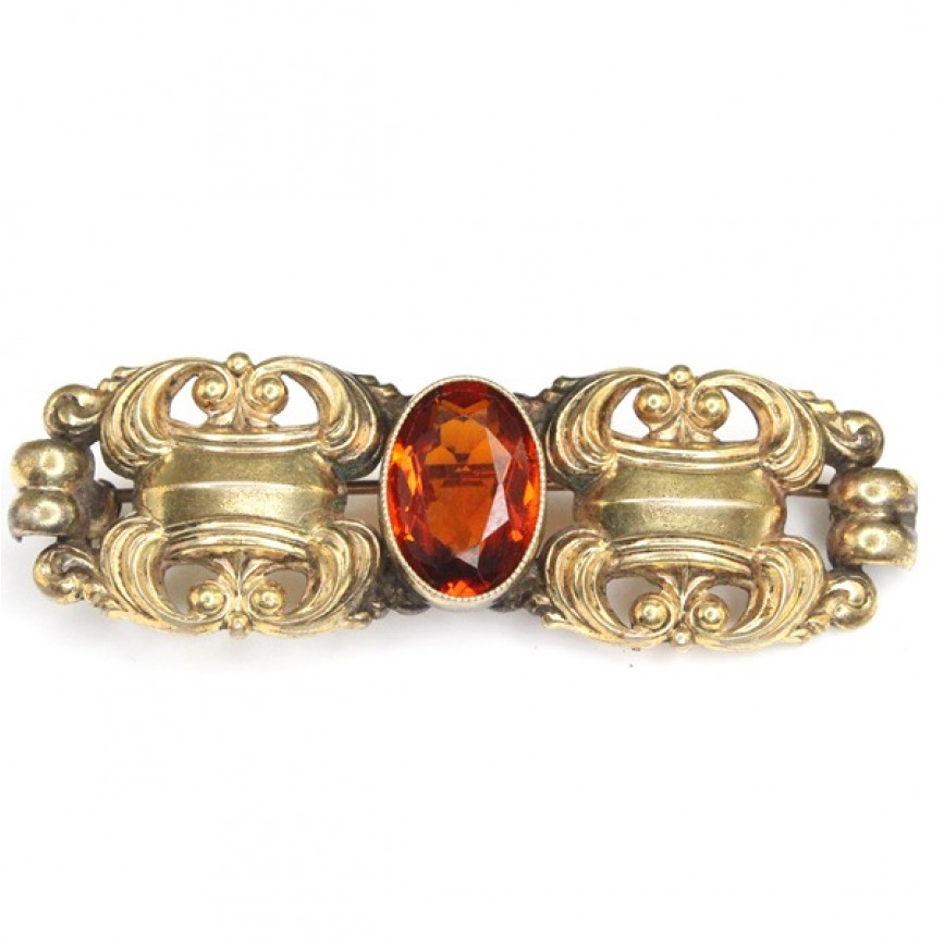 anturaj de citrin faux Cairngorm, sertizat in caseta ovoidala, avand deschiderea fin decorata prin ajurare