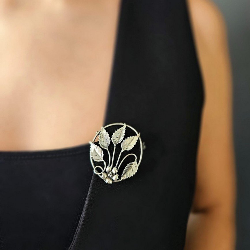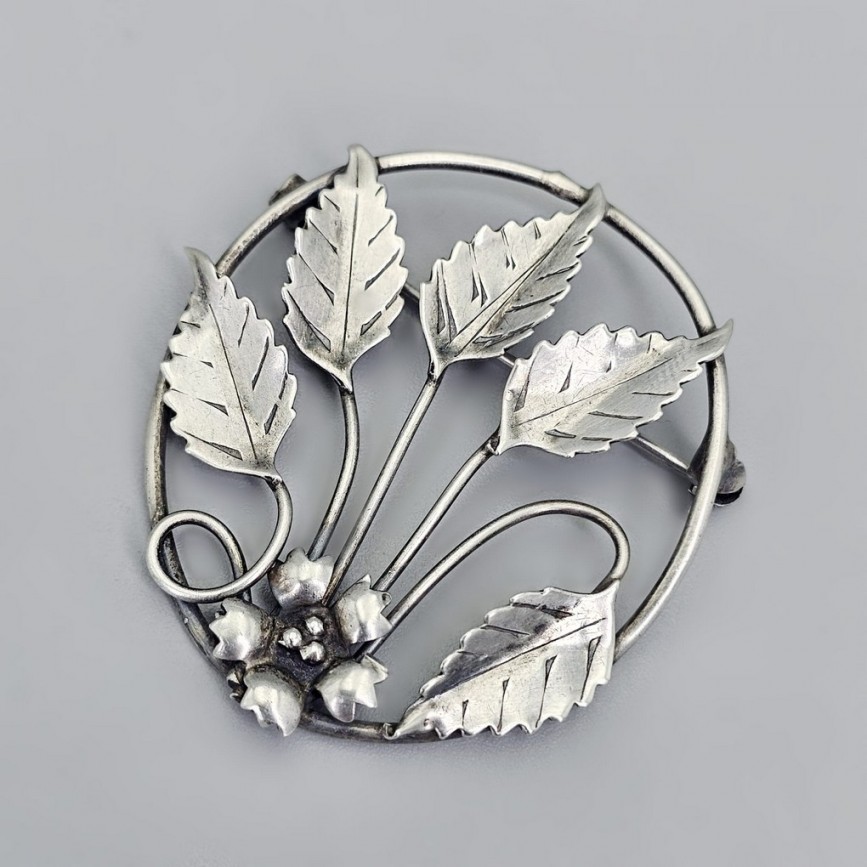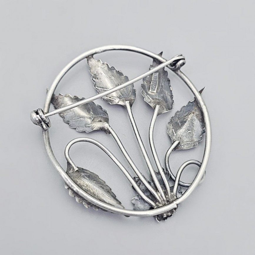 Broșă antique Art & Craft manufacturată în argint sterling.