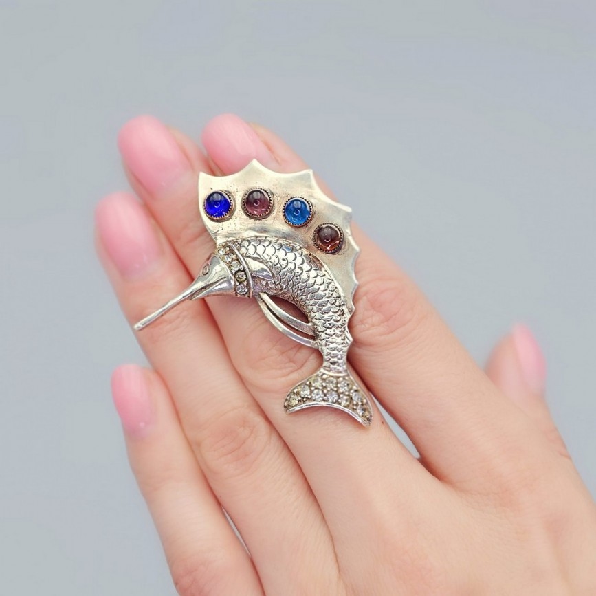 Inedită broșă statement „Sailfish” din argint sterling.