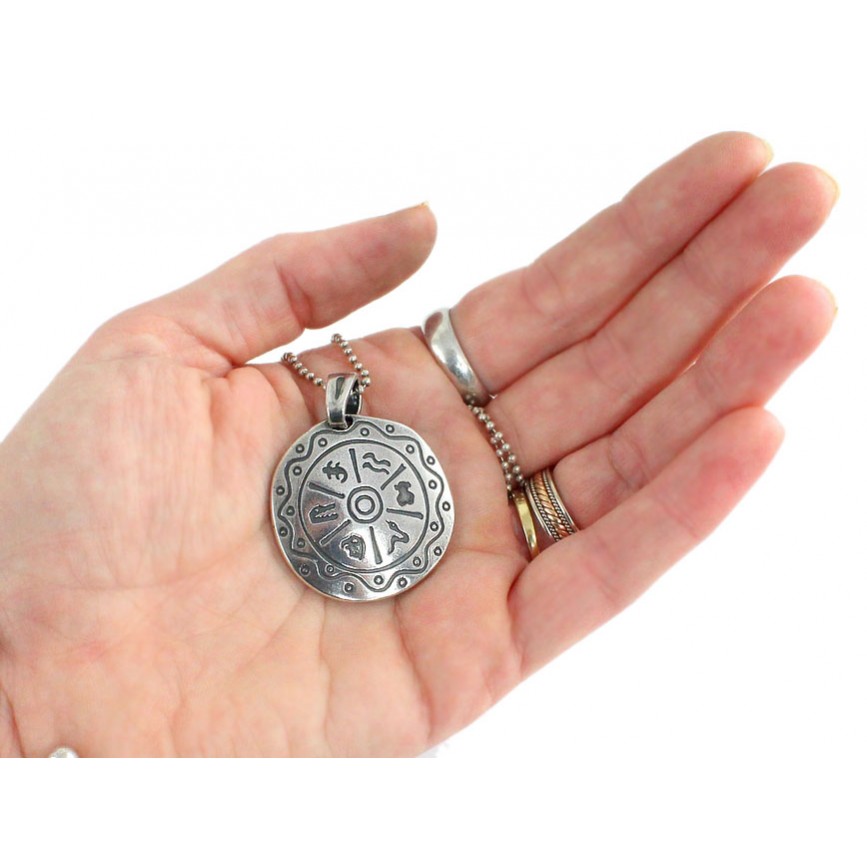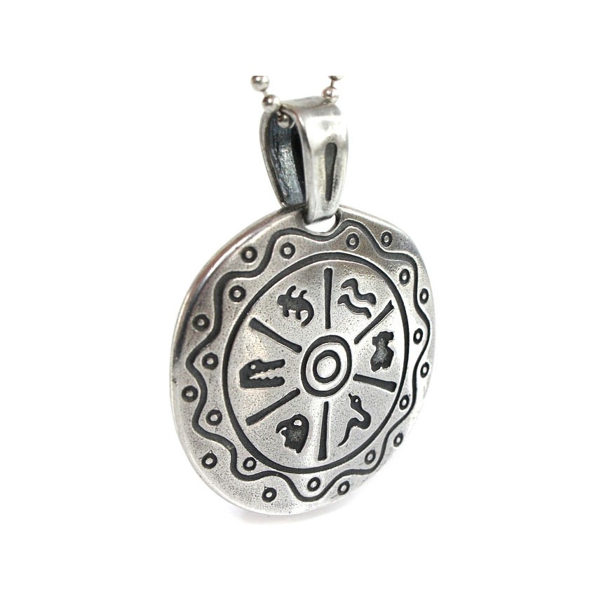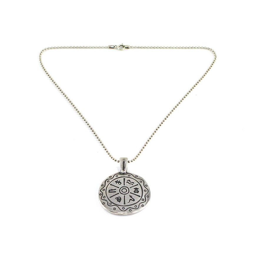 Pandantul elaborat sub forma unui medalion, este ornamentat cu un calendar zodiacal amerindian în care este inserat ursulețul Tous, simbol al acestui prestigios brand internațional.
