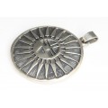 amuleta decorata cu simbol solar, element comun culturilor antice, pre-columbiene