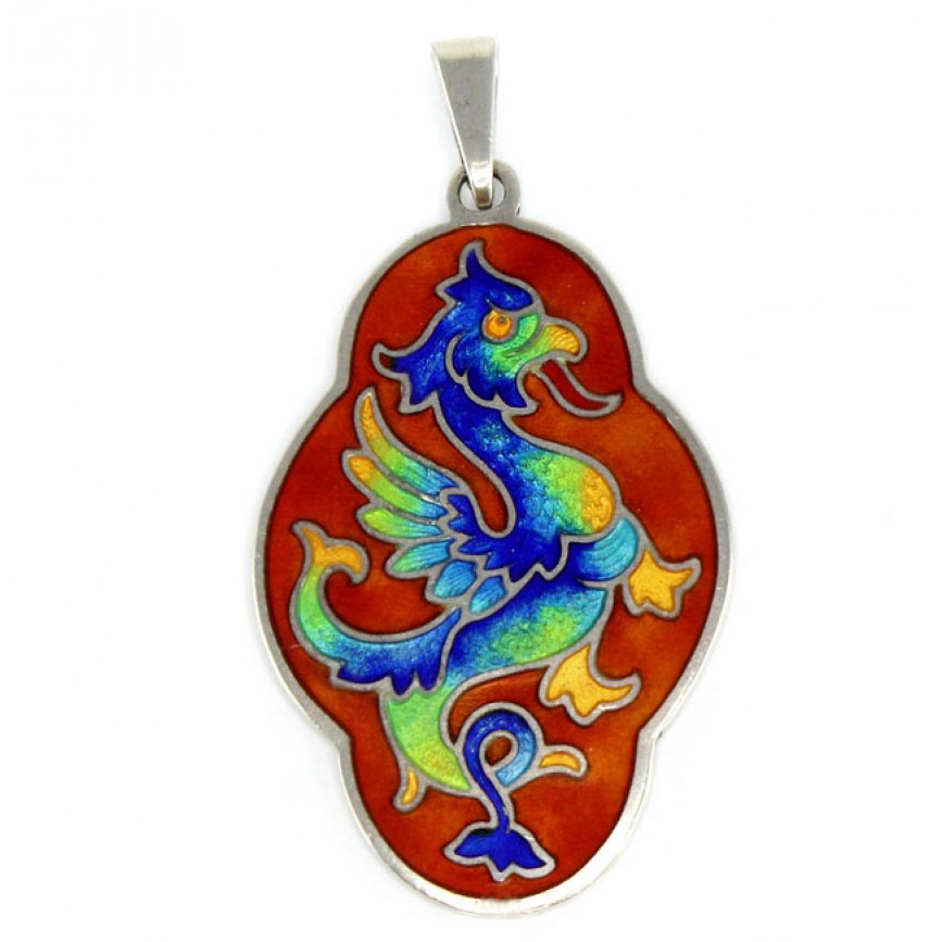 Pandant statement scandinav, din argint emailat, ilustrând un grifon splendid stilizat în manieră neoclasică.