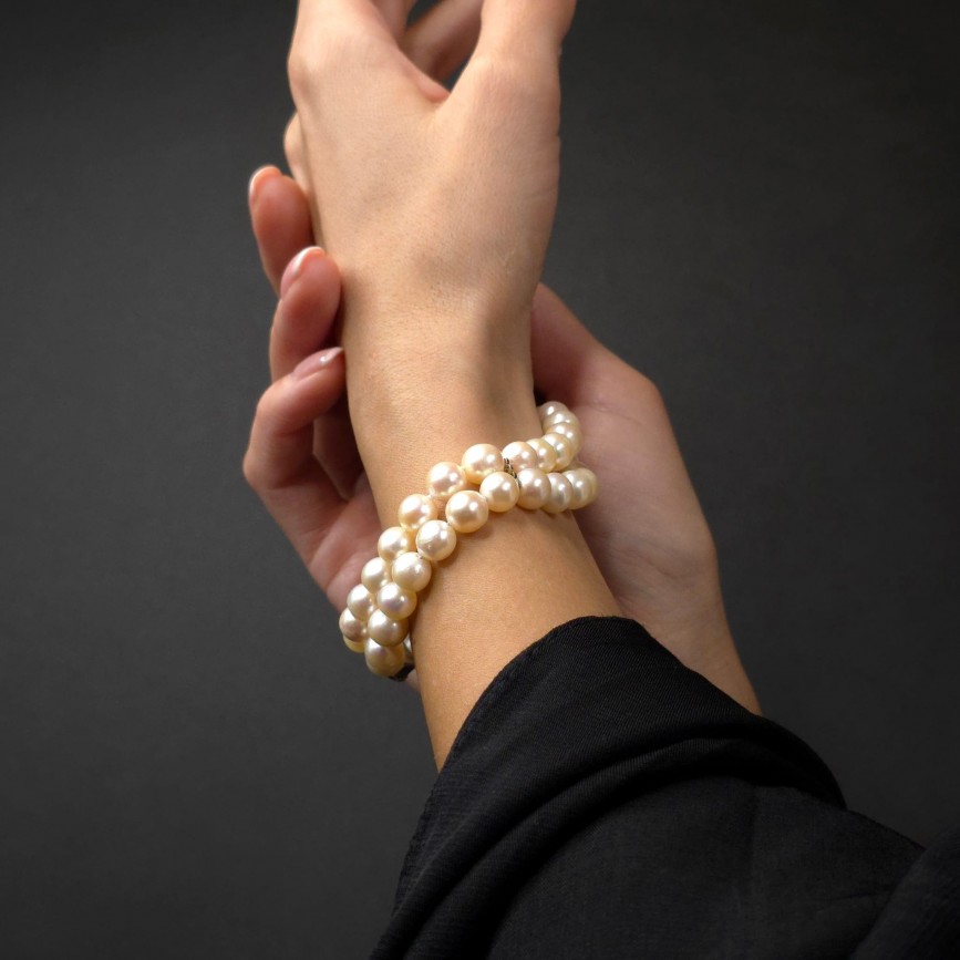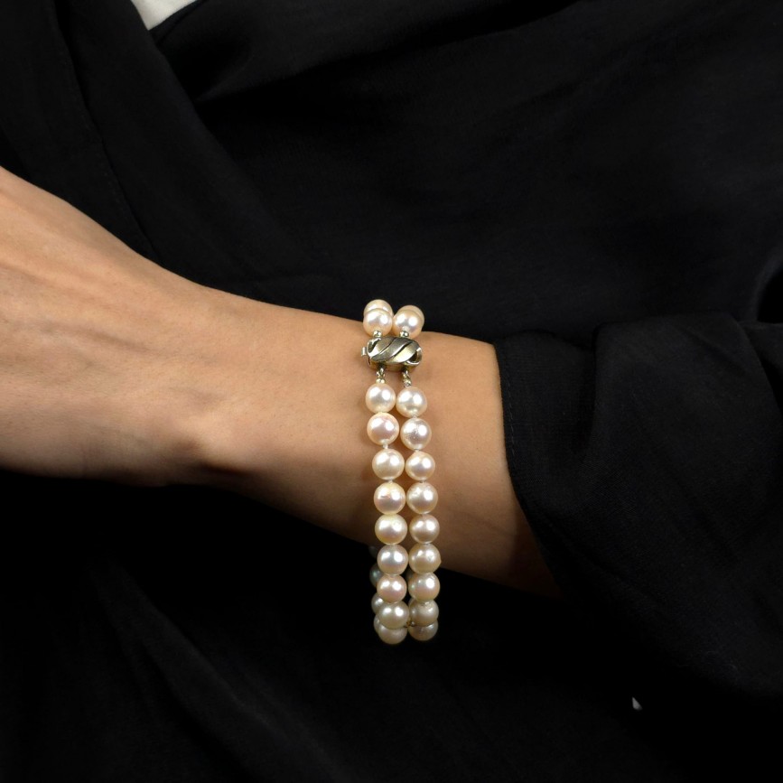 Brățară vintage double-strand, decorată cu perle de cultură de apă sărată Akoya.