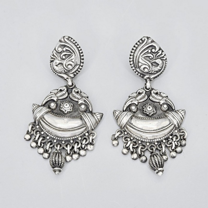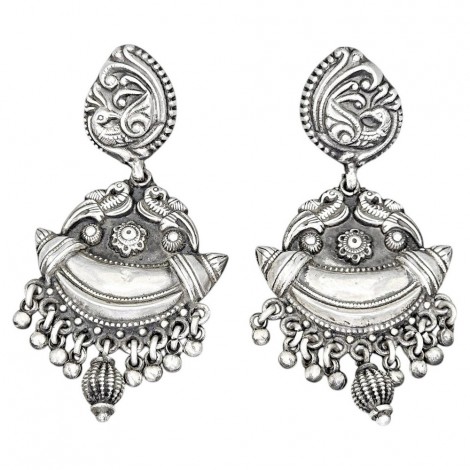 Cercei candelabru etnici indieni, din argint, ornamentați cu simboluri amuletice Mayura (Păunul Sacru).