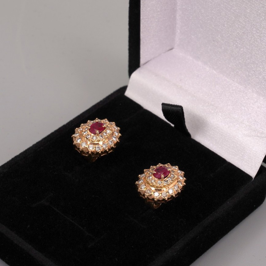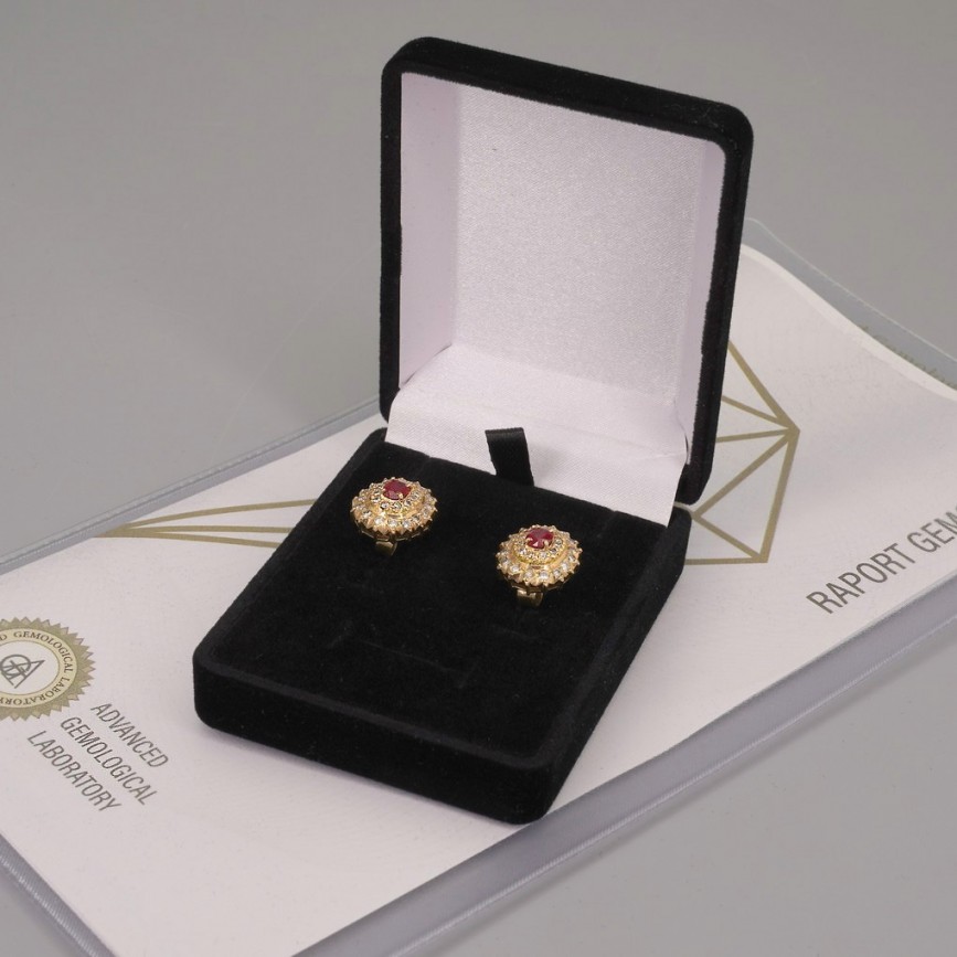 Rafinați cercei din aur roșu 14k decorați cu diamante și rubine naturale