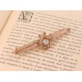 Rafinată broșă de perioadă victoriană, manufacturată în aur roșu 14 k, decorată cu diamante naturale totalizând circa 0.51 CT :