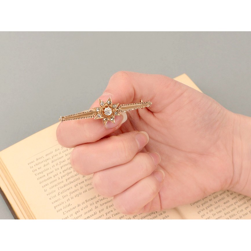 Rafinată broșă victoriană din aur roșu decorată cu 9 diamante naturale