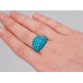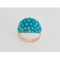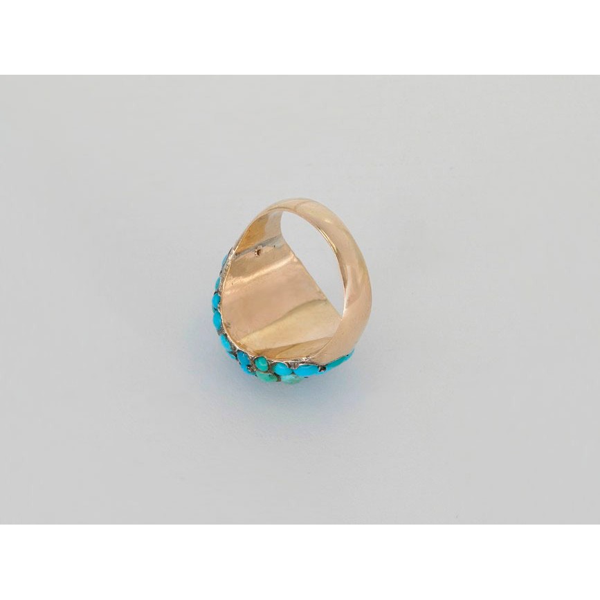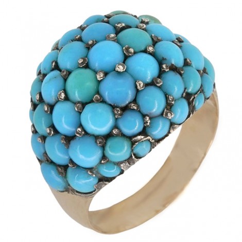 Inel victorian, manufacturat în aur galben 14k și argint, decorat cu o bogată suită de turcoaze naturale.