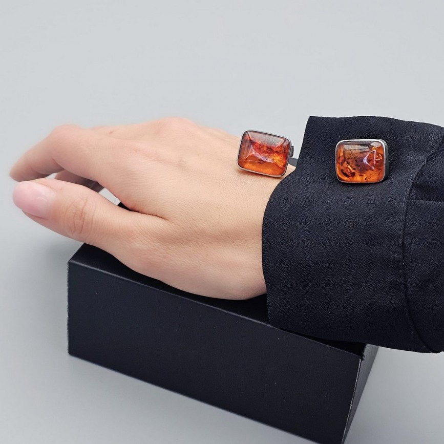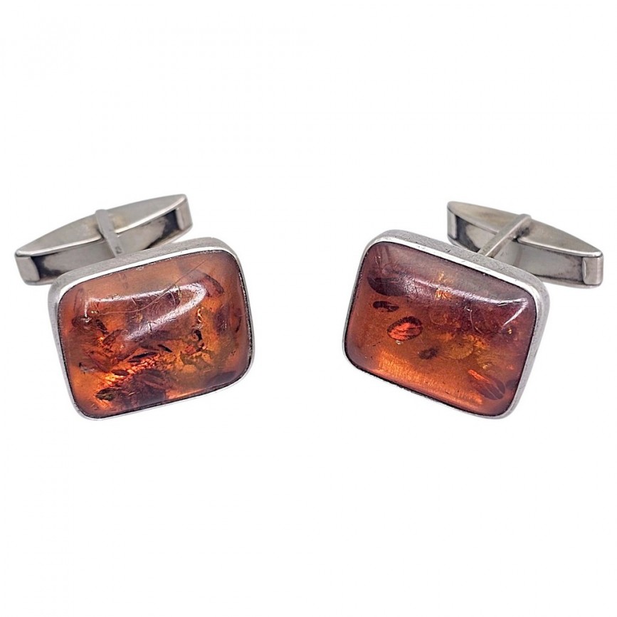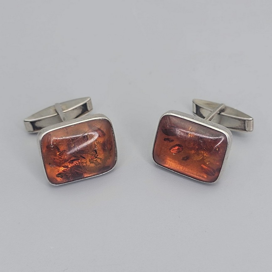 Butoni mid-century din argint, decorați cu anturaje de chihlimbar baltic natural.