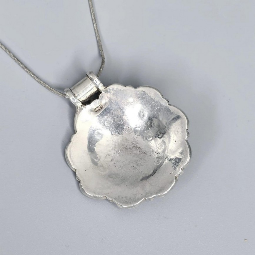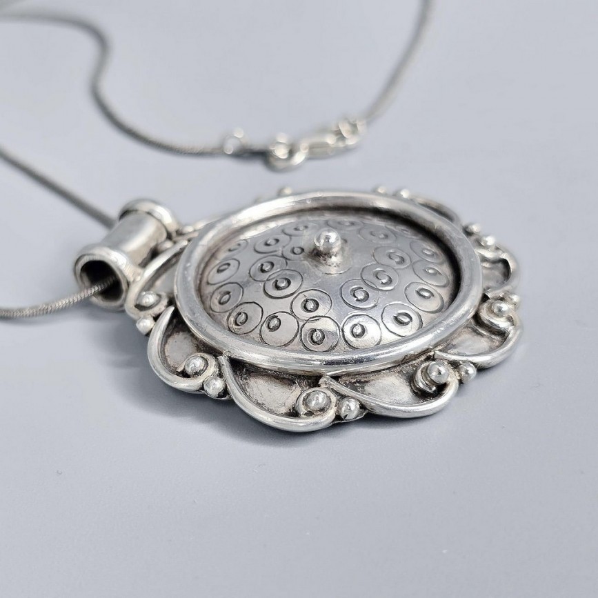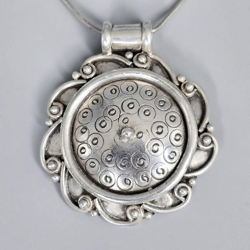 Colier din argint accesorizat cu pandant amuletic etnic indian Mandala din argint masiv.