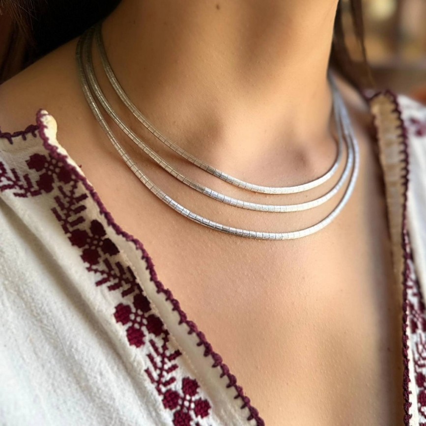 NOU Colier modernist multistrand din argint rodinat și texturat | preloved cca. 1960 - 1970