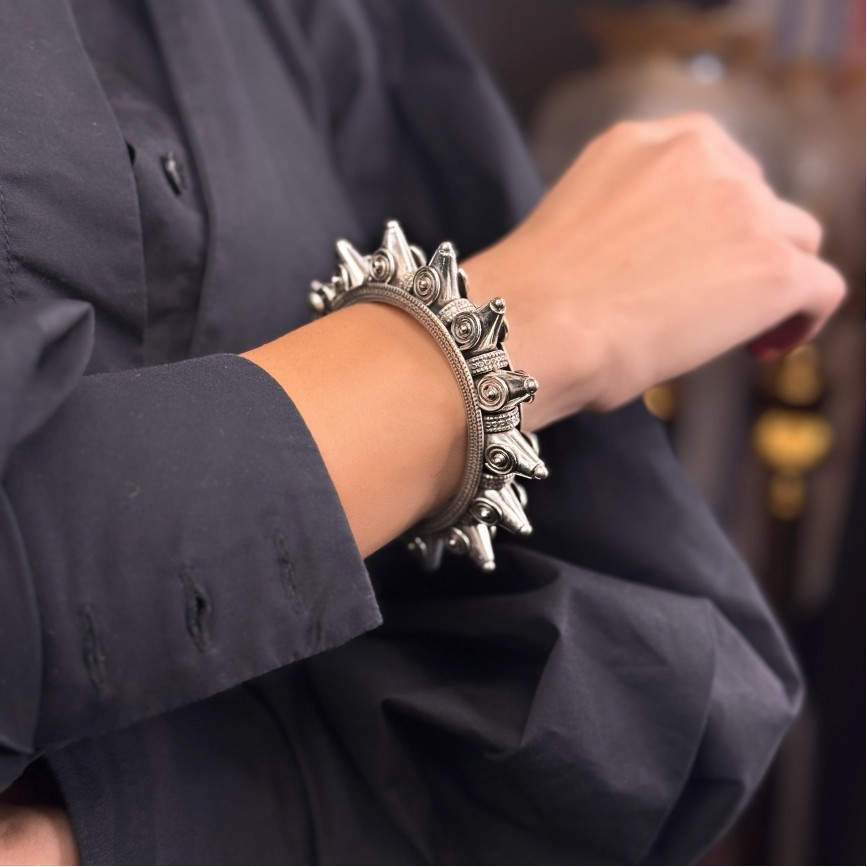 Spectaculoasă brățară etnică berberă, Azbeg, manufacturată în argint masiv.
