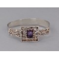 Brățară statement modernistă de perioadă mid-century, tip „bangle”, decorată cu un anturaj de ametist natural.