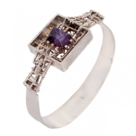 Brățară statement mid-century design brutalist manufacturată în argint & ametist natural | GErmania cca.1960