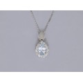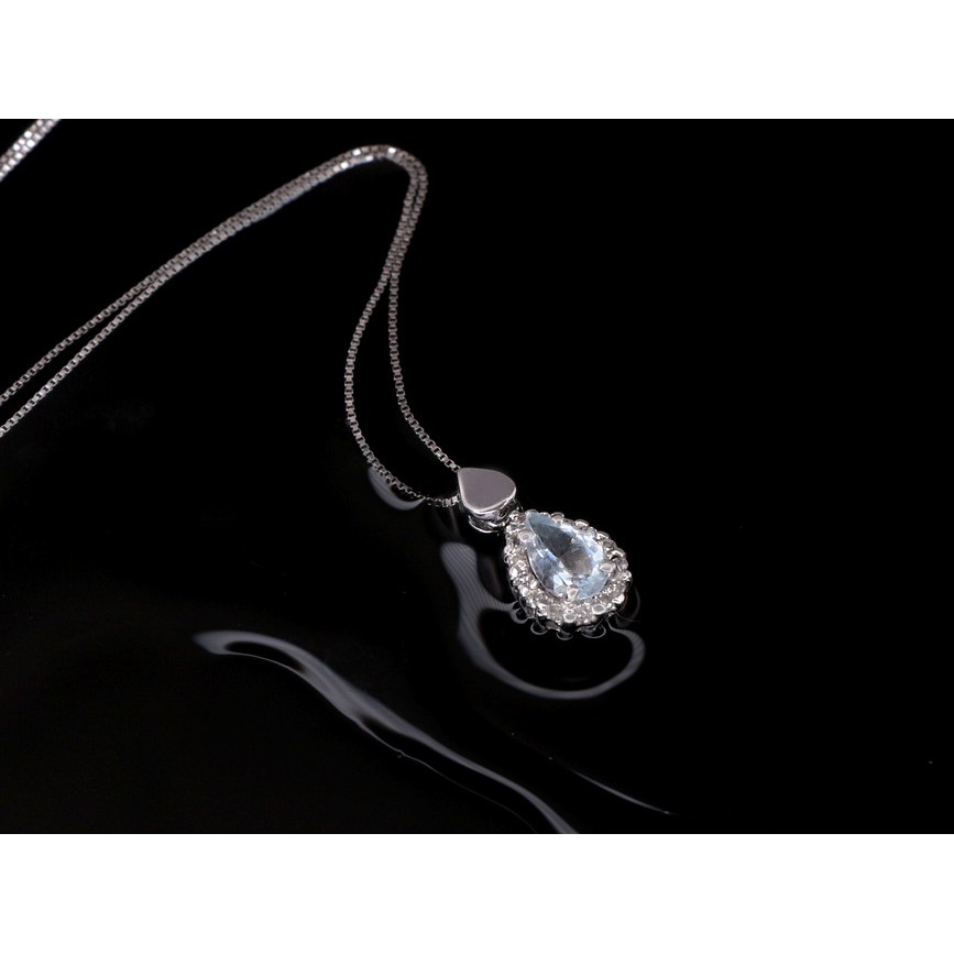 Colier cu pandant din aur alb 18k decorat cu diamante și acvamarin