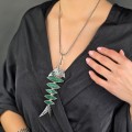 Remarcabil pandant statement mexican din argint decorat cu anturaje de jad nefrit natural