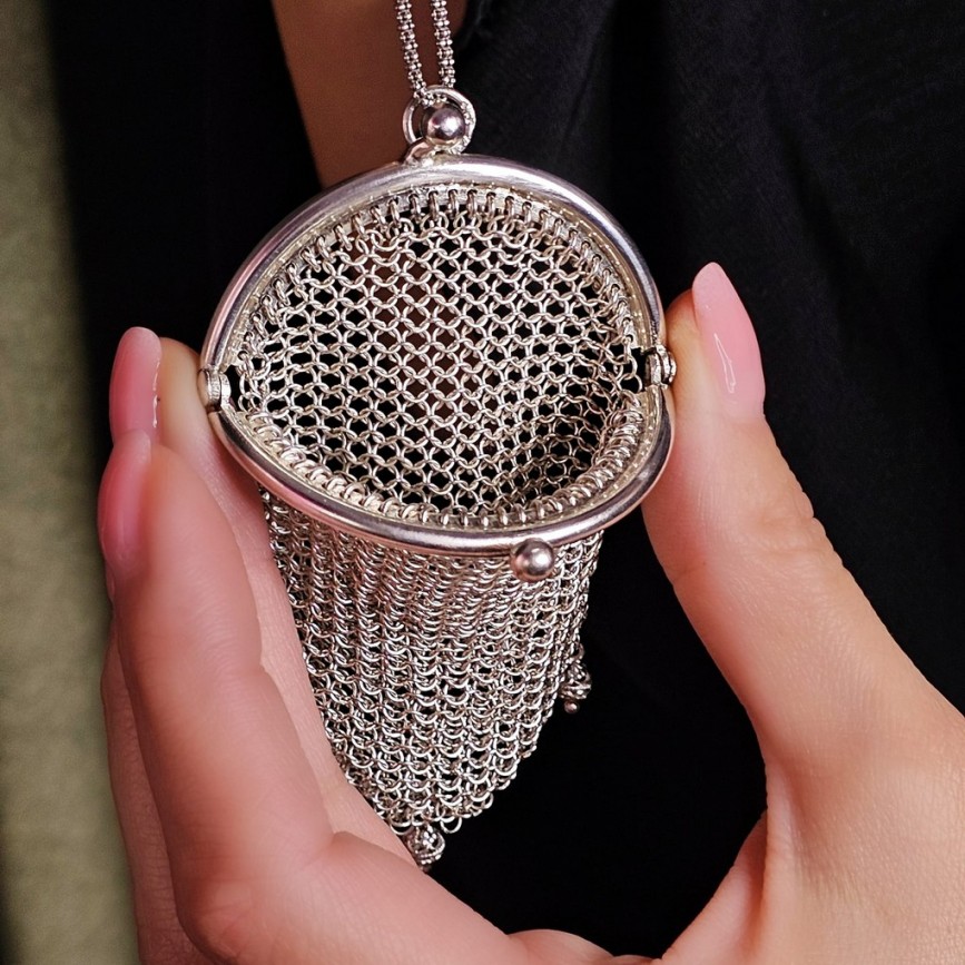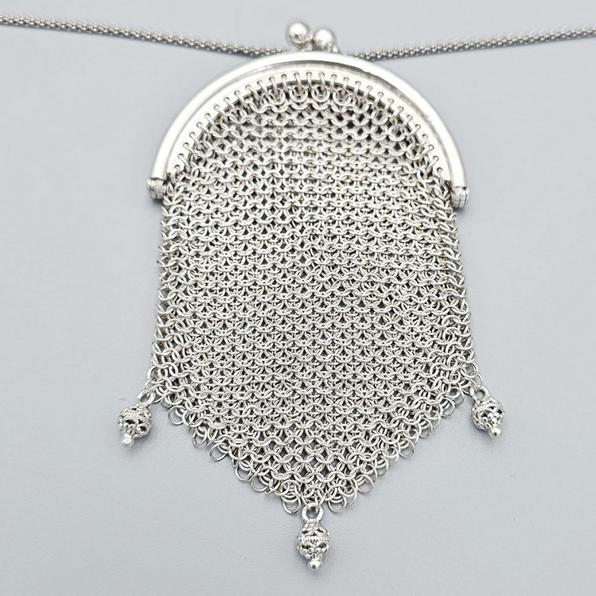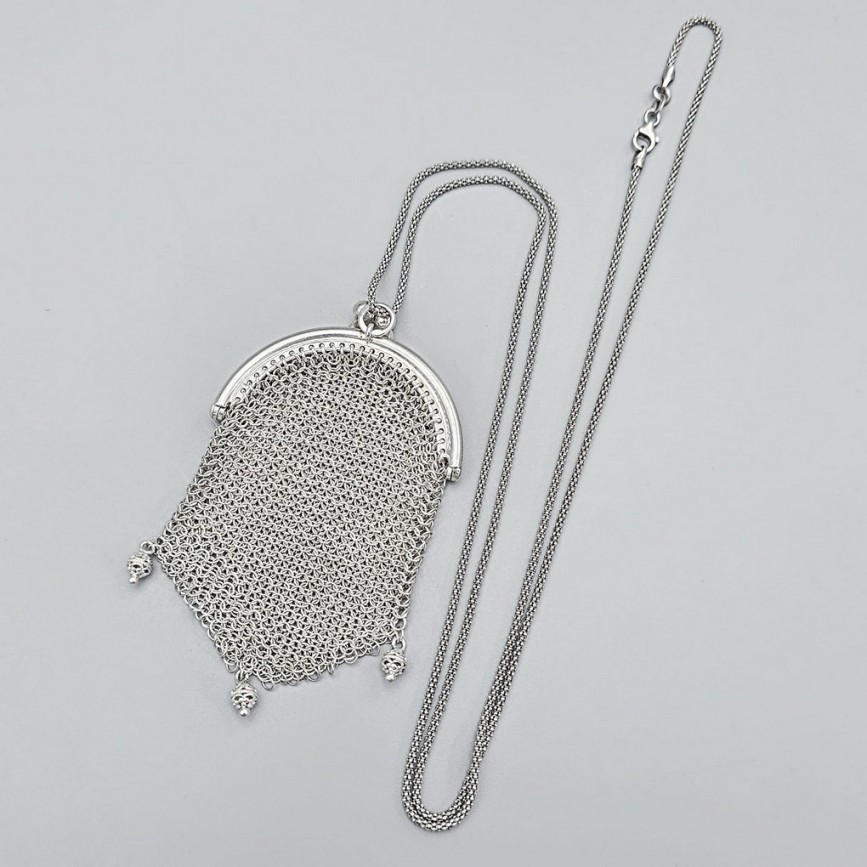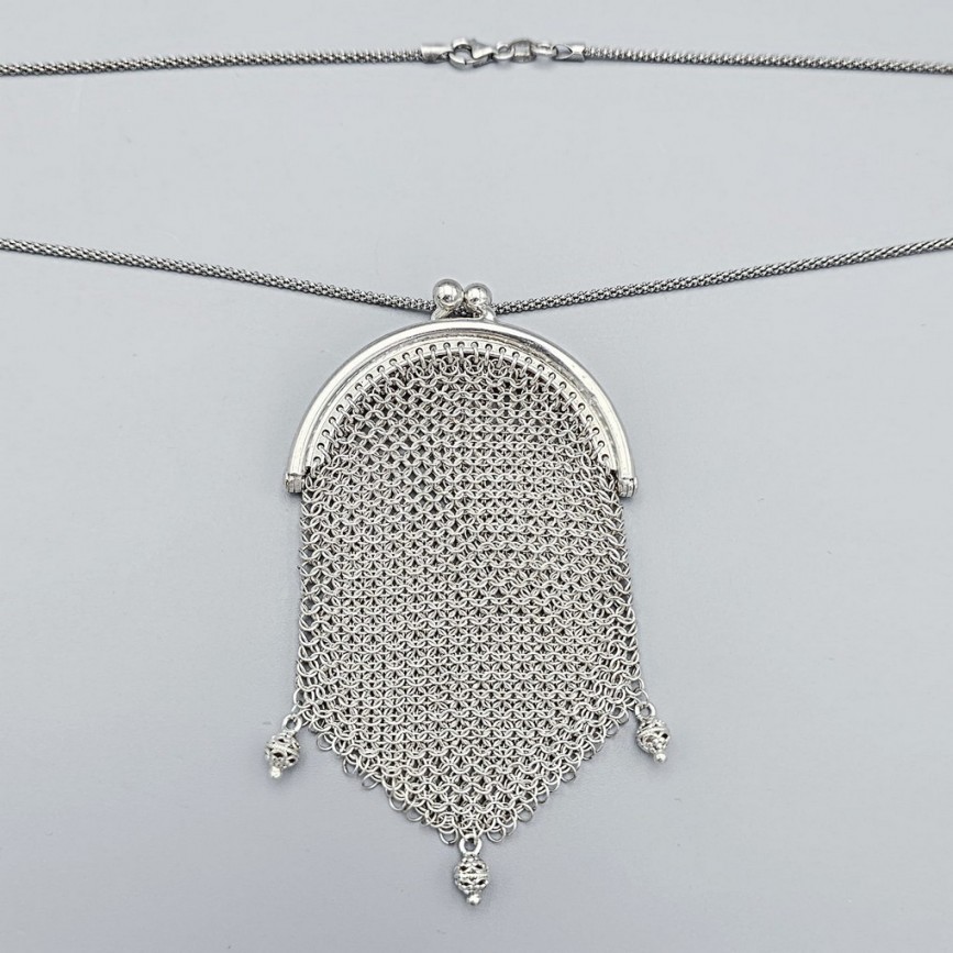 Lanț tip popcorn, accesorizat cu un pandant original porte-monnaie chatelaine, confecționat din argint 800.