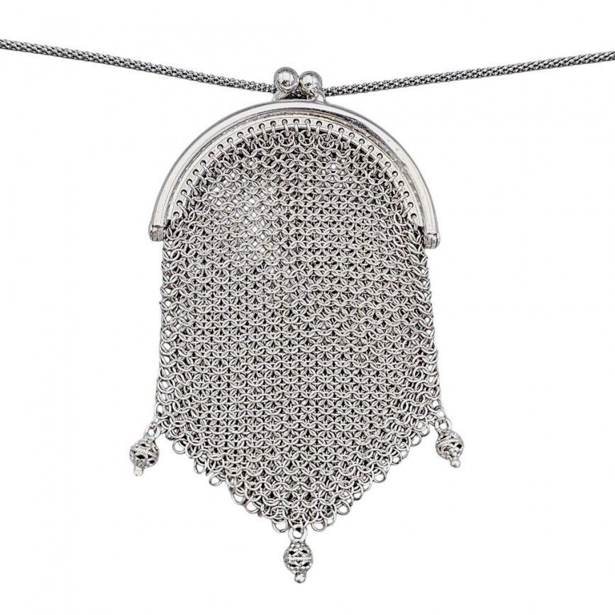 Colier accesorizat cu pandant porte-monnaie chatelaine de perioadă Belle Epoque din argint.