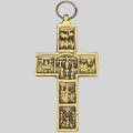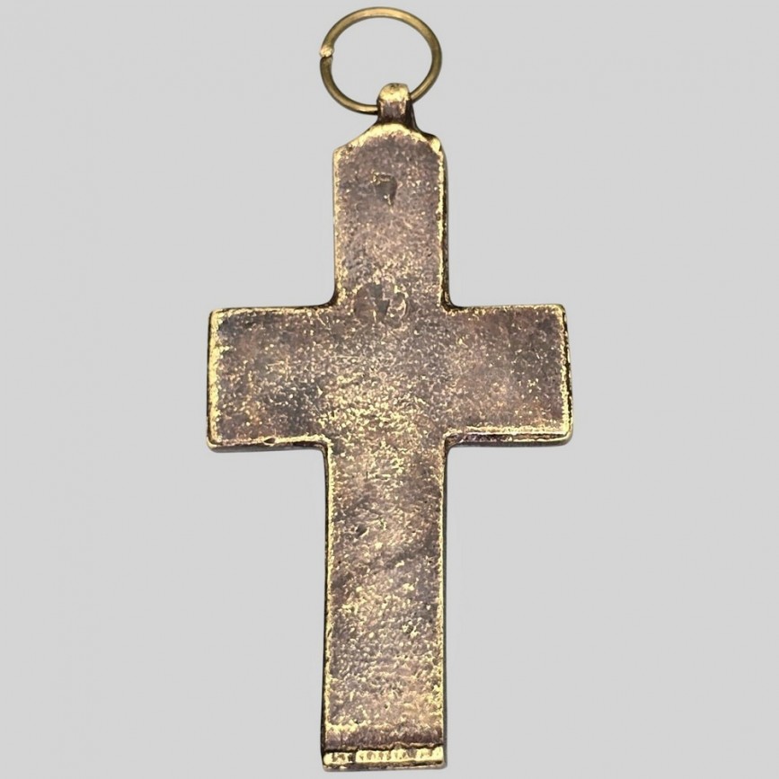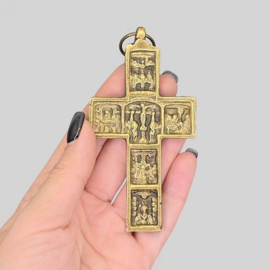 Veche cruce pectorală pe rit vech din bronz | Răstignirea și alte 4 scene biblice | atelier balcanic cca.1800