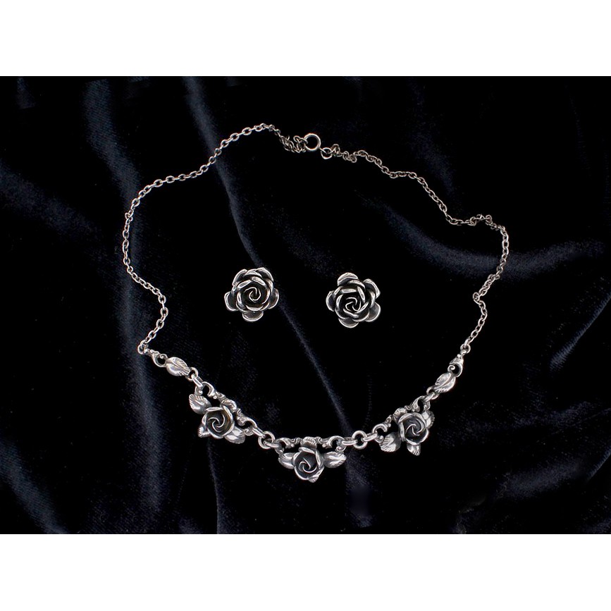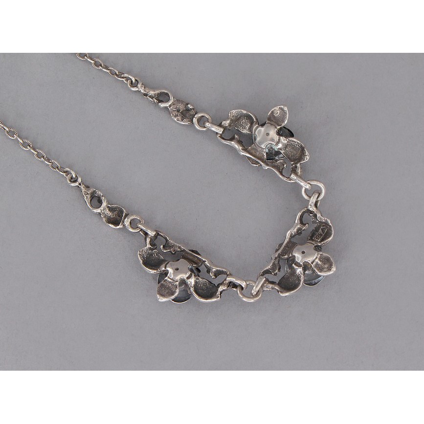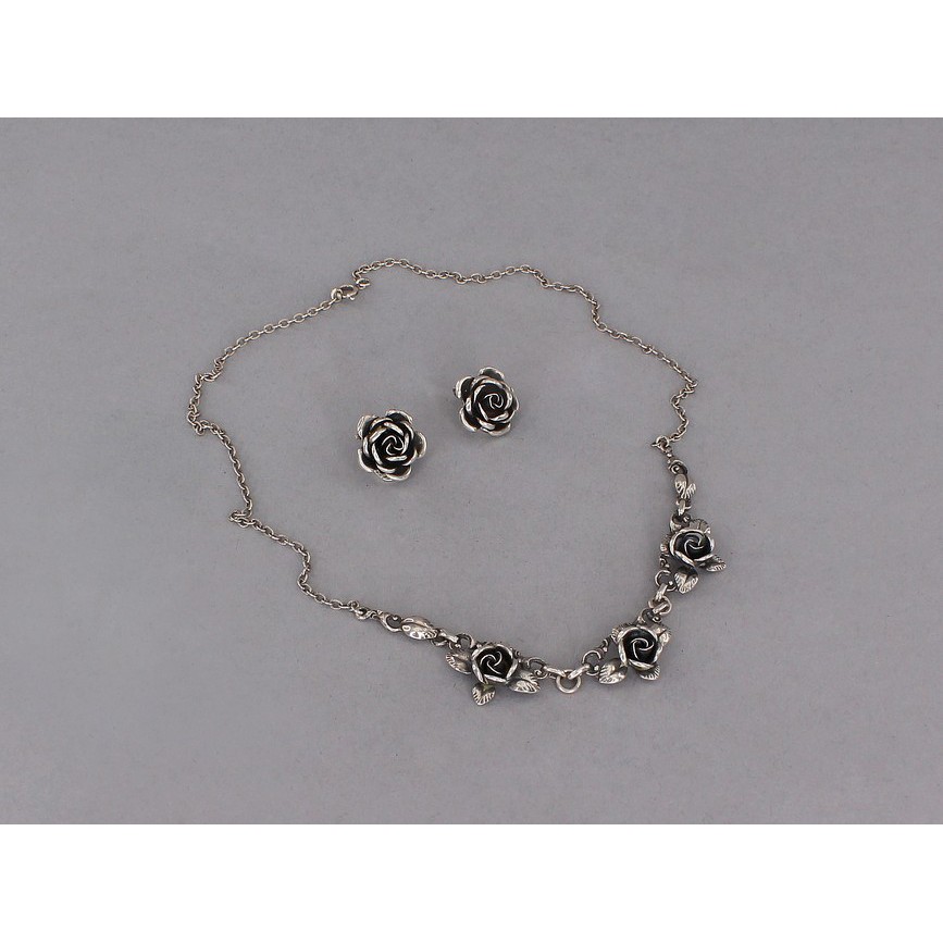 Rafinat demi-parure vintage , din argint, compus din cercei și colier cu design vegetal-floral.