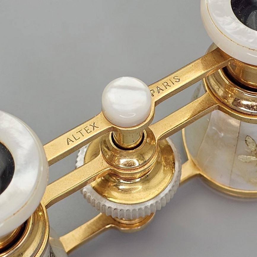 Binoclu de operă realizat în atelierul Altex Paris, reprezentativ pentru accesoriile teatrale rafinate produse în Franța la începutul secolului XX.